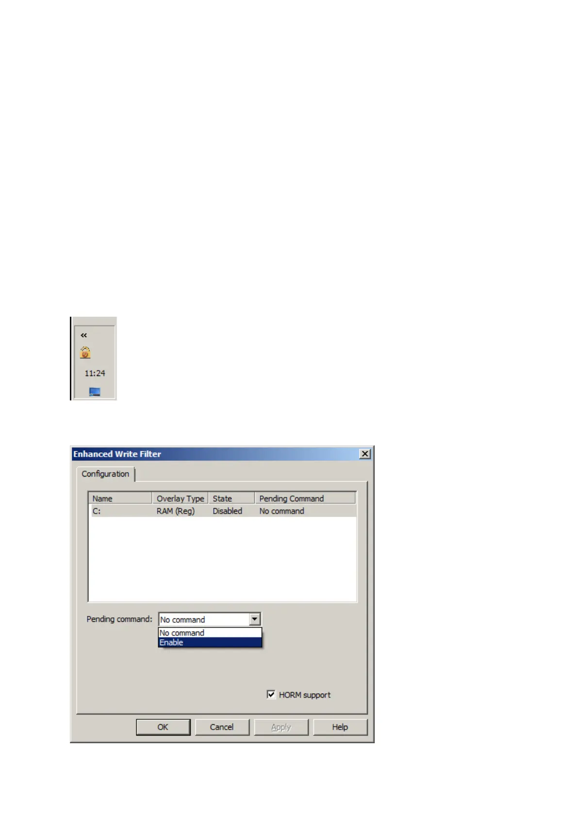 Note the HORM icon should show protection is not active