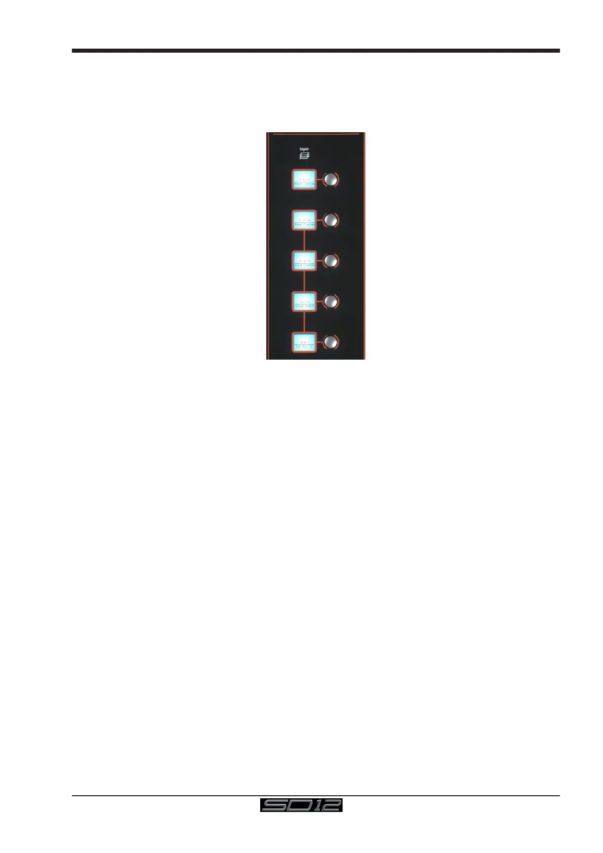 The SD12's worksurface is divided into Layers and Banks. Each Bank contains twelve channels, and the channels which are currently