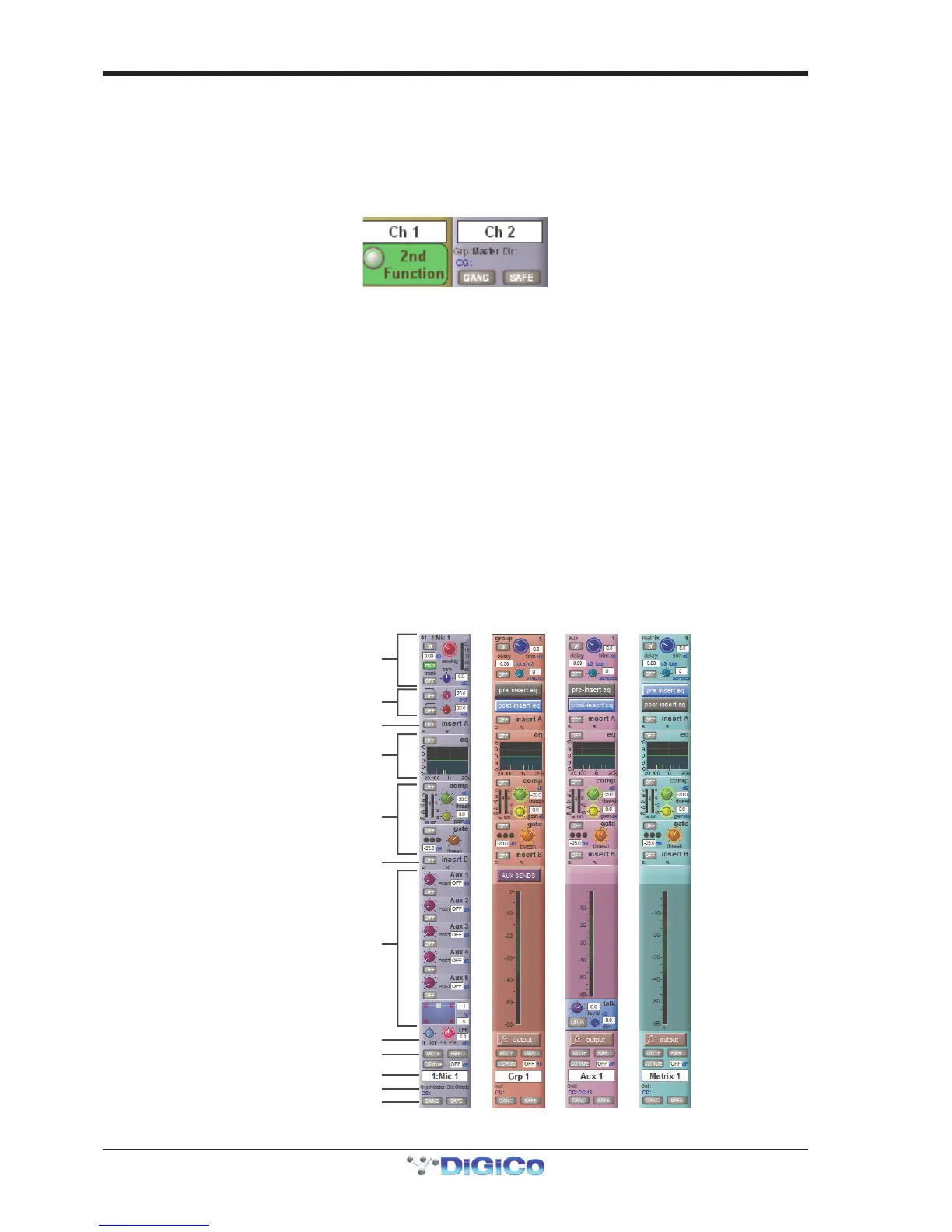 To the left of the Channel Strip panel are more channel controls: When pressed, the 2nd function button allows access to