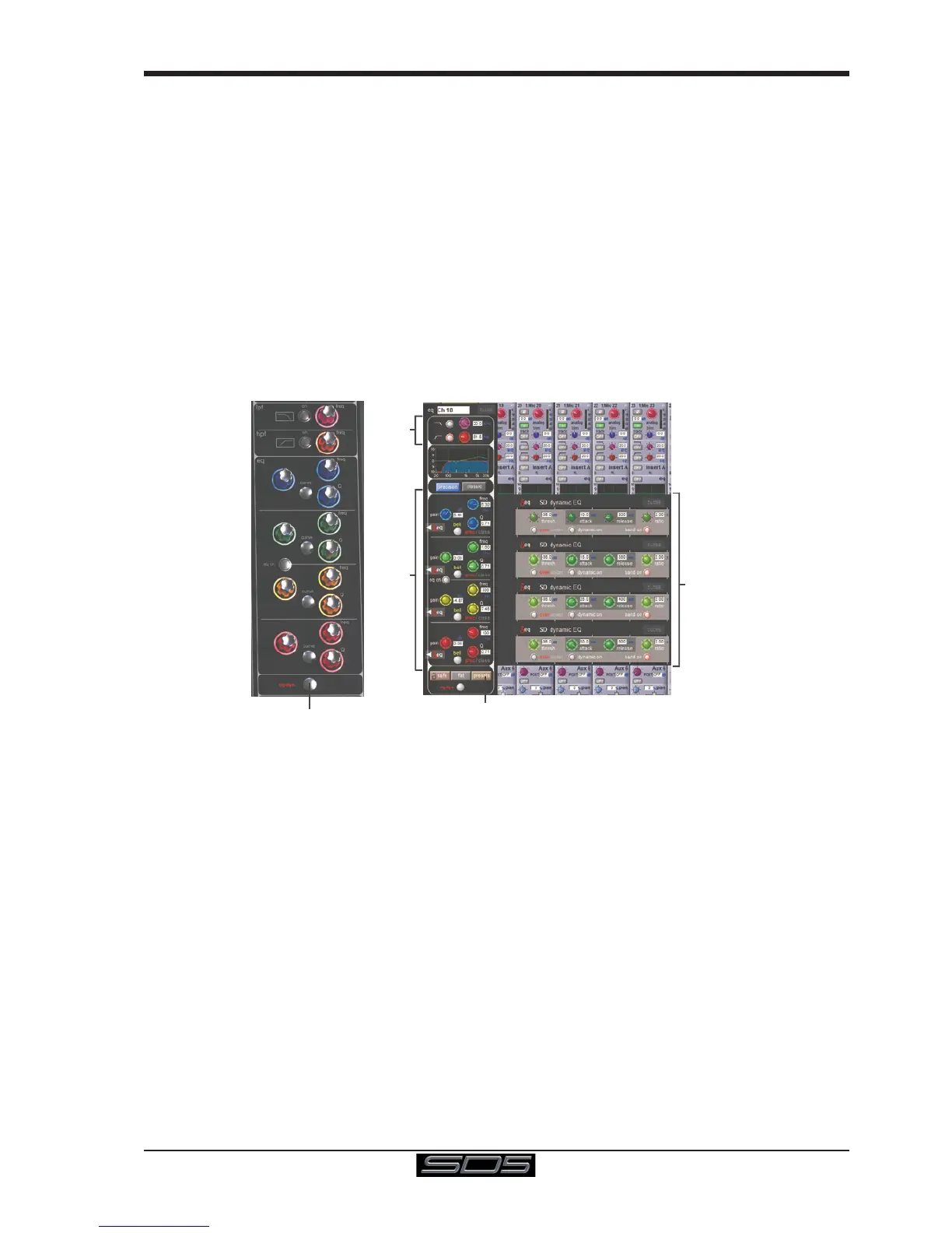 The EQ section comprises four user-configurable parametric filters with Dynamic Control for up to 24 Channels and a pair of
