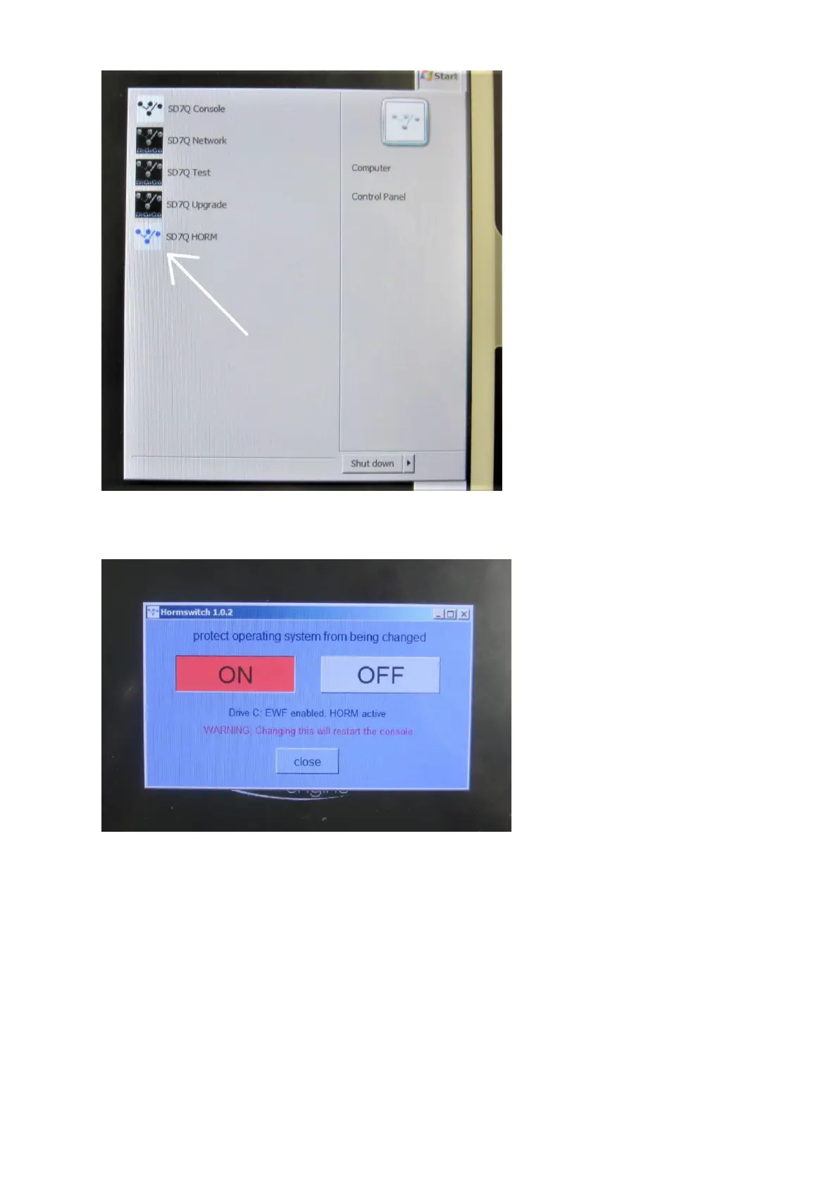 This will open the HORM operating window, showing that HORM protection is active (ON)