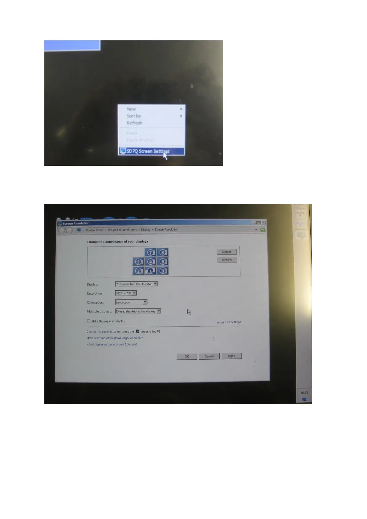 Right click on the desktop, see desktop menu open and click on SD7Q Screen Settings