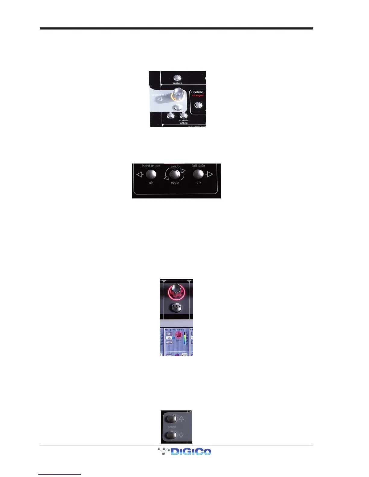 aligned. Normally, these control the level and on/off status of the three highlighted aux sends, but can have a number of functions