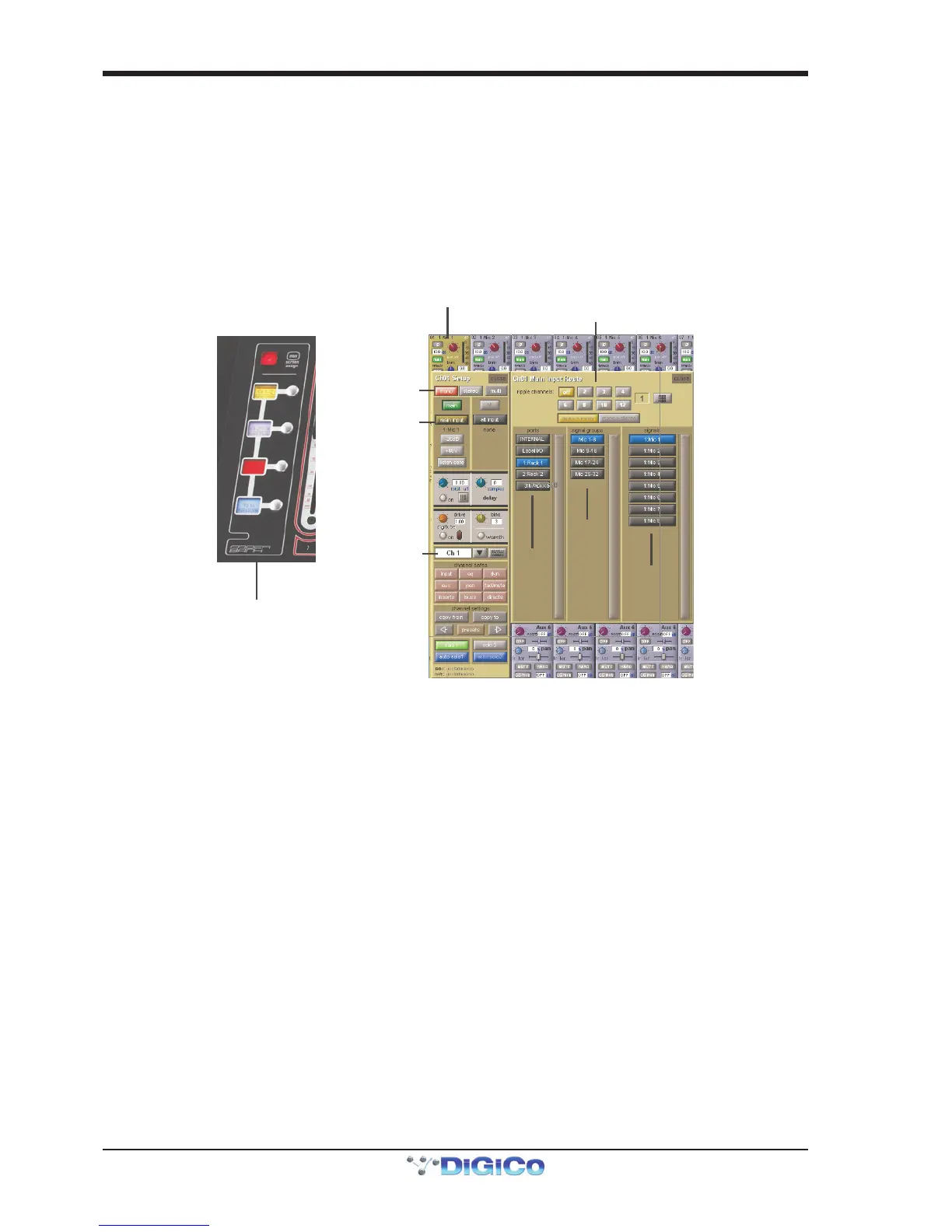All channel input, output, insert send and insert return routing is done via routing displays, accessed via the dark grey routing