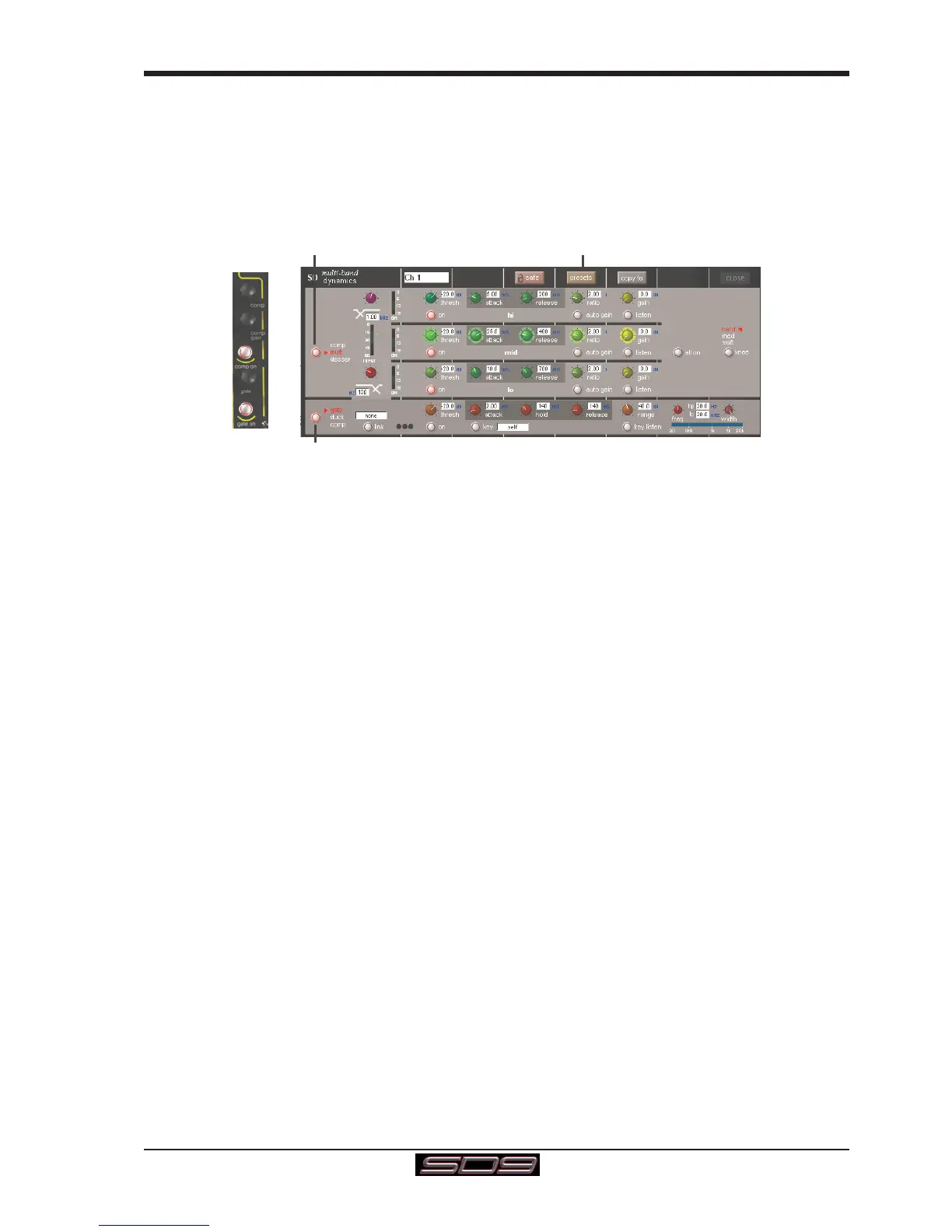 compressor, and is not assigned to any band. The bands can be switched on individually using the on buttons in the left-hand side of each