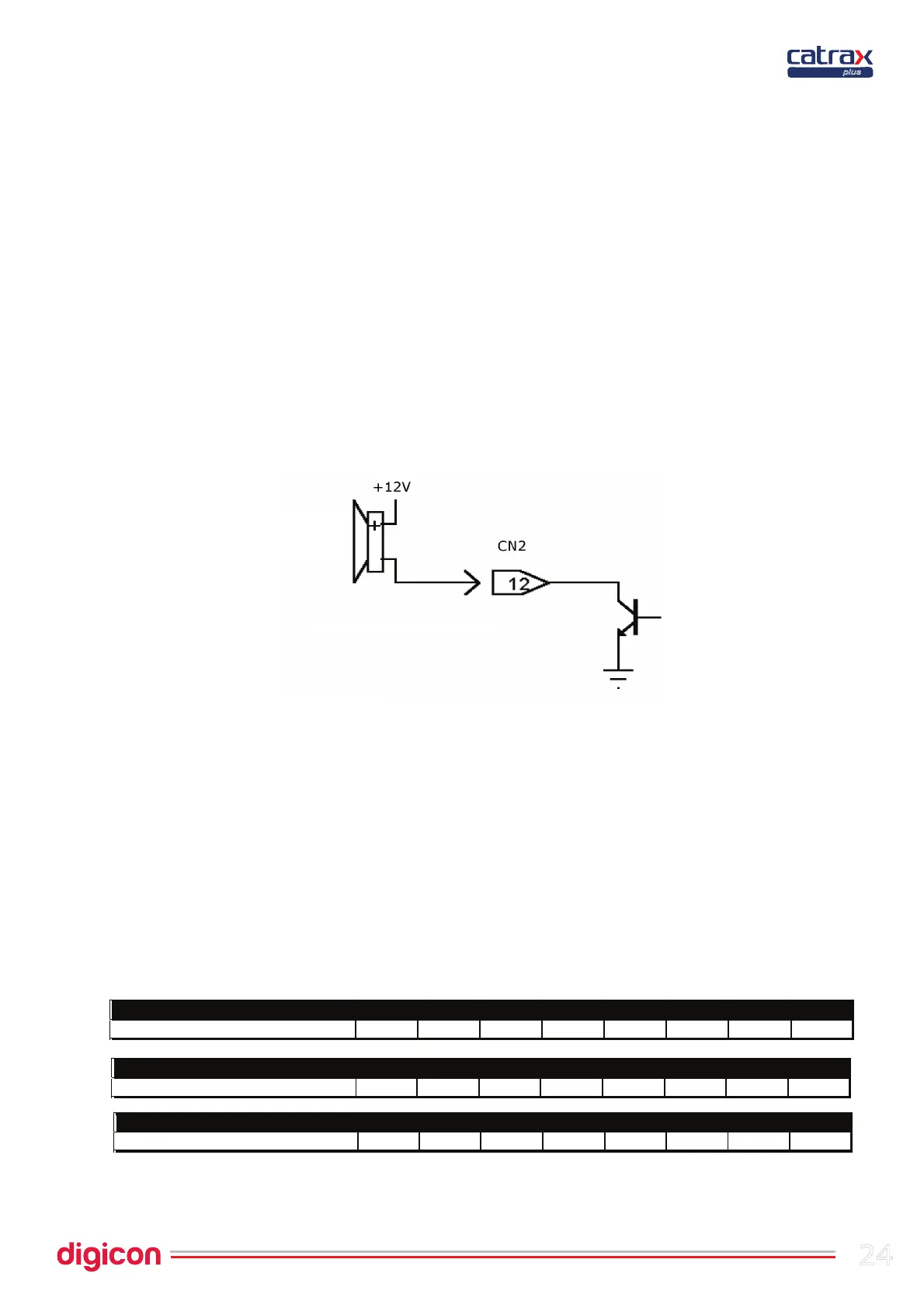 The sound alarm output is activated by a NPN transistor (maximum 500 mA) every time
