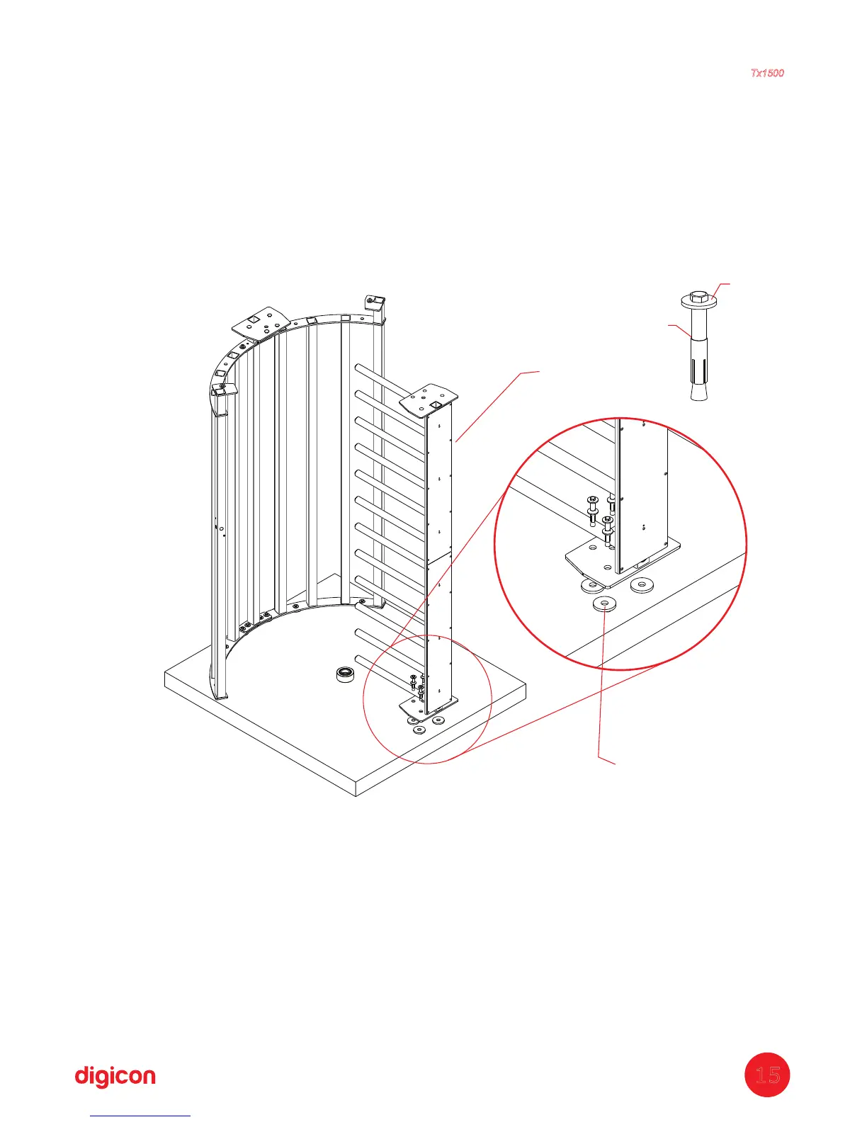 e. Level the column and wedge it with washers, if necessary;