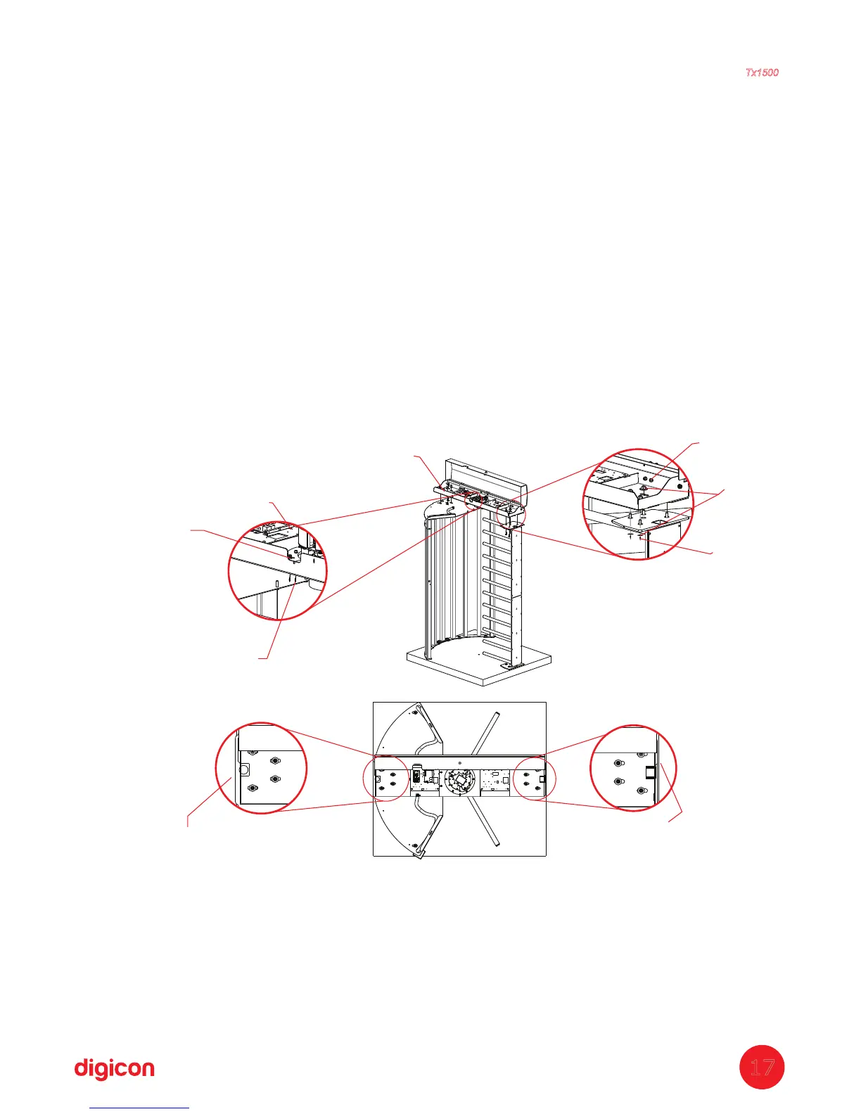 f. After aligning, fasten the screws in all the fixing points of the turnstile