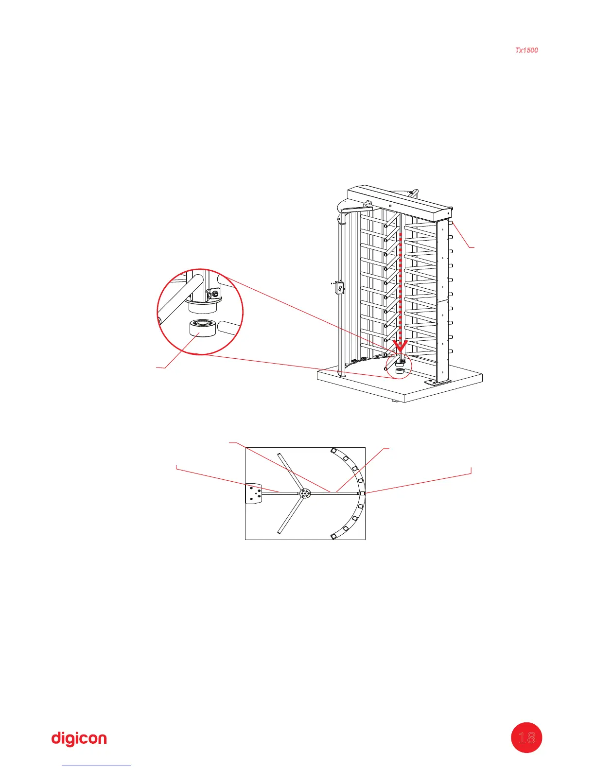 b. Fit the central arms assembly (P28) in the bearing support (P19). In this stage,