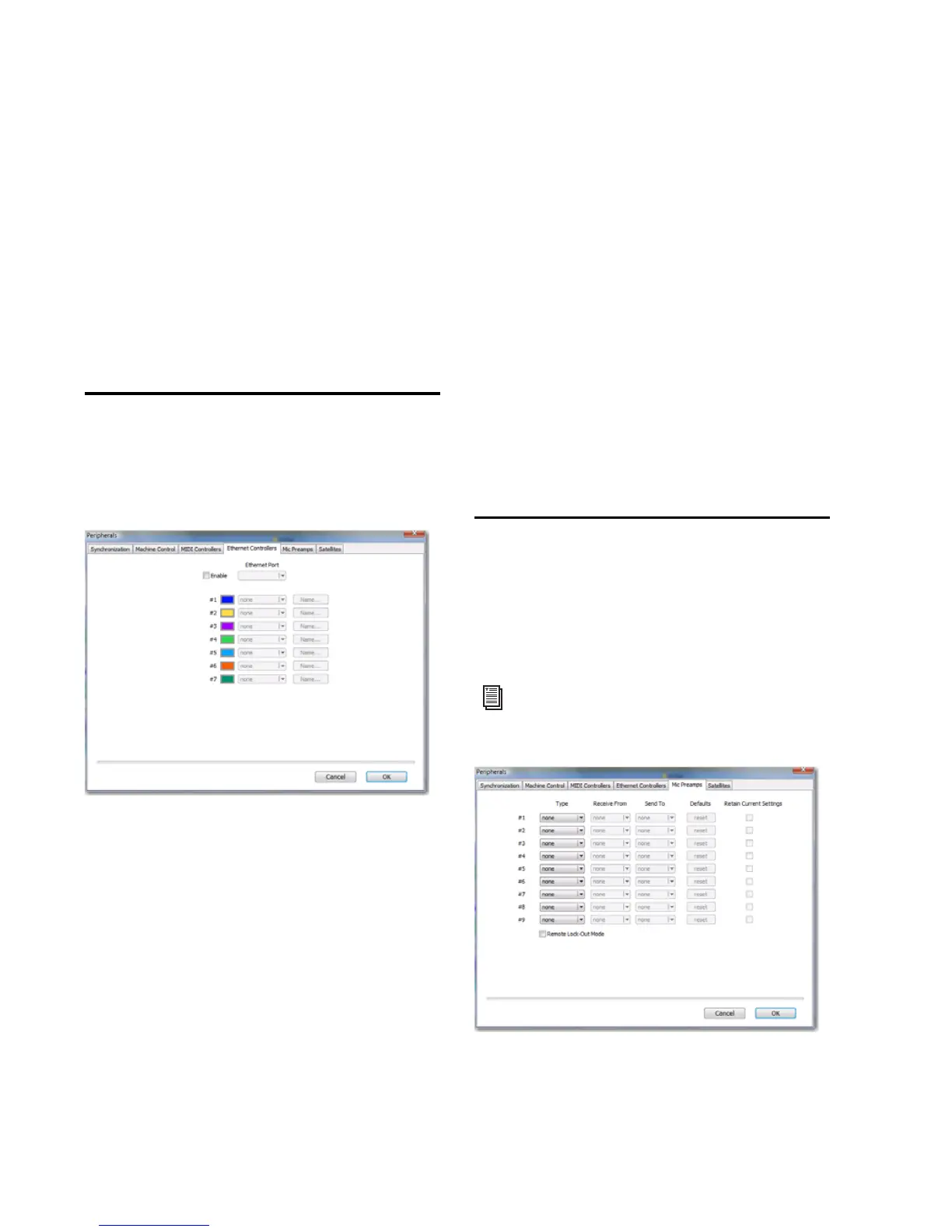 The Mic Preamps page lets you configure up to
