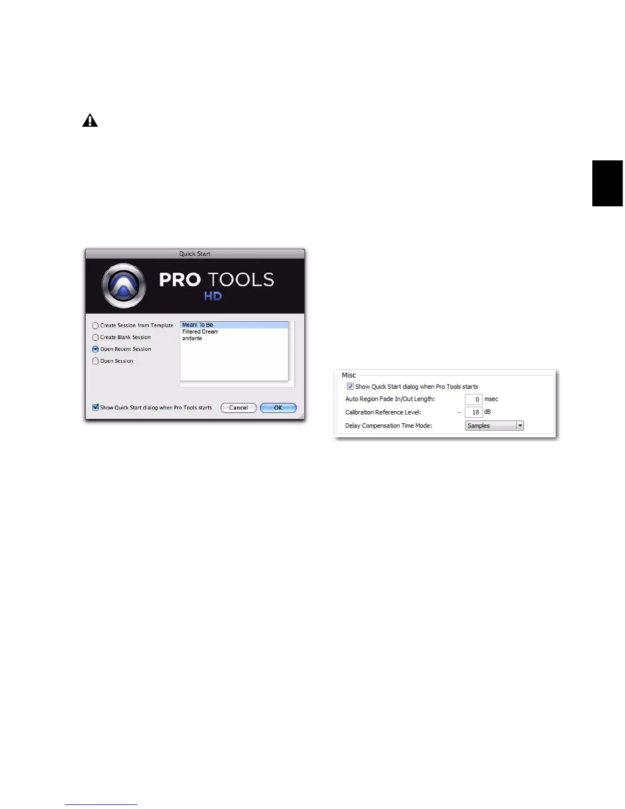 Show Quick Start Dialog when Pro Tools Starts option