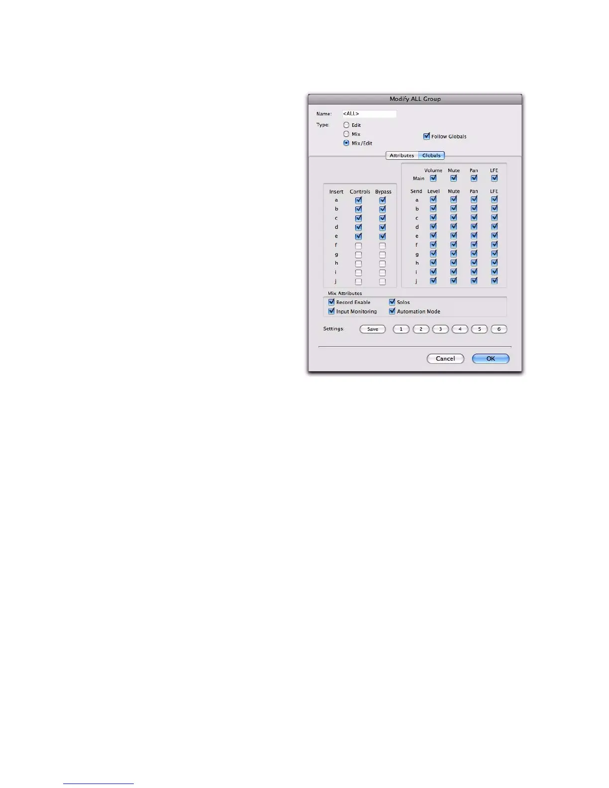 Mix/Edit to change the settings for the “All”