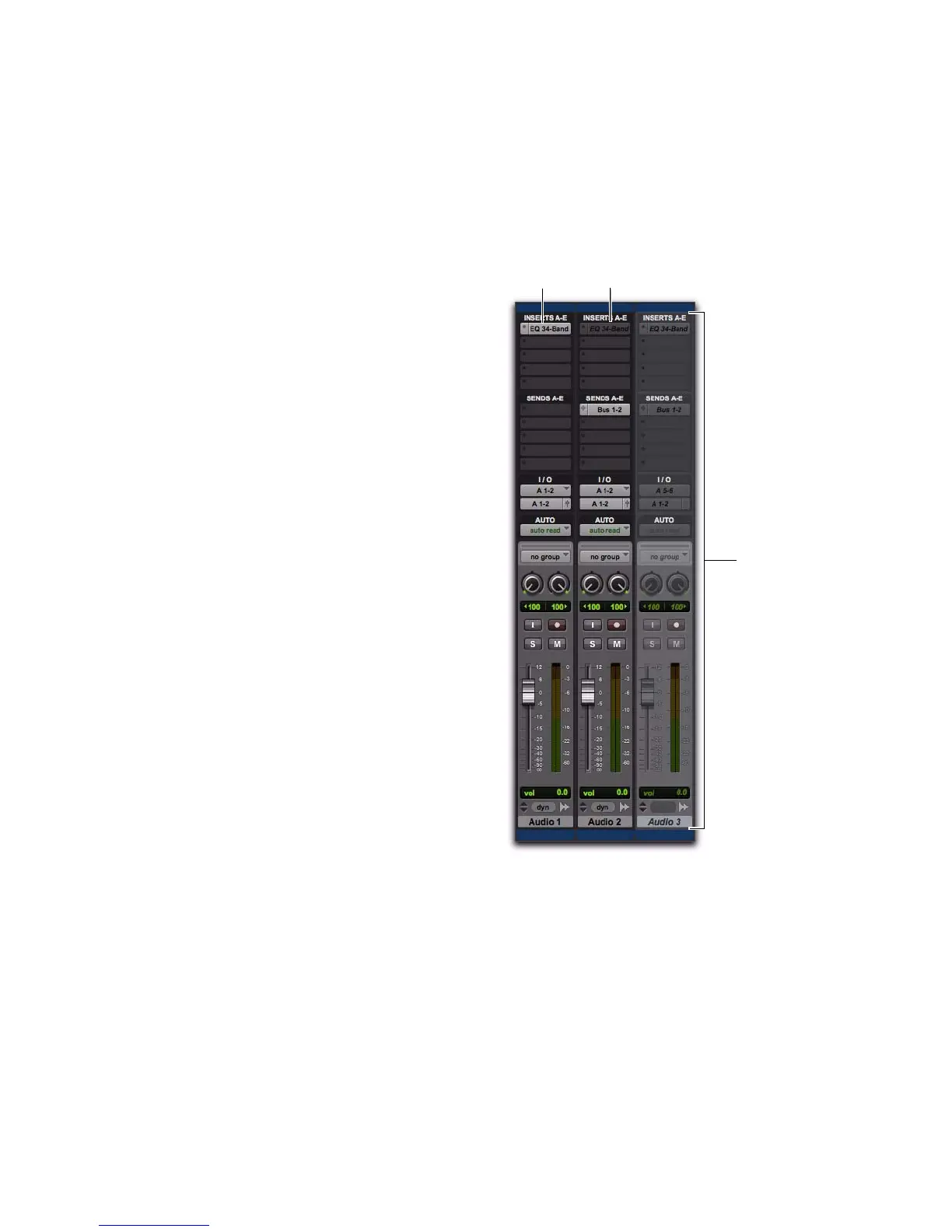 When a track is inactive, the entire channel strip