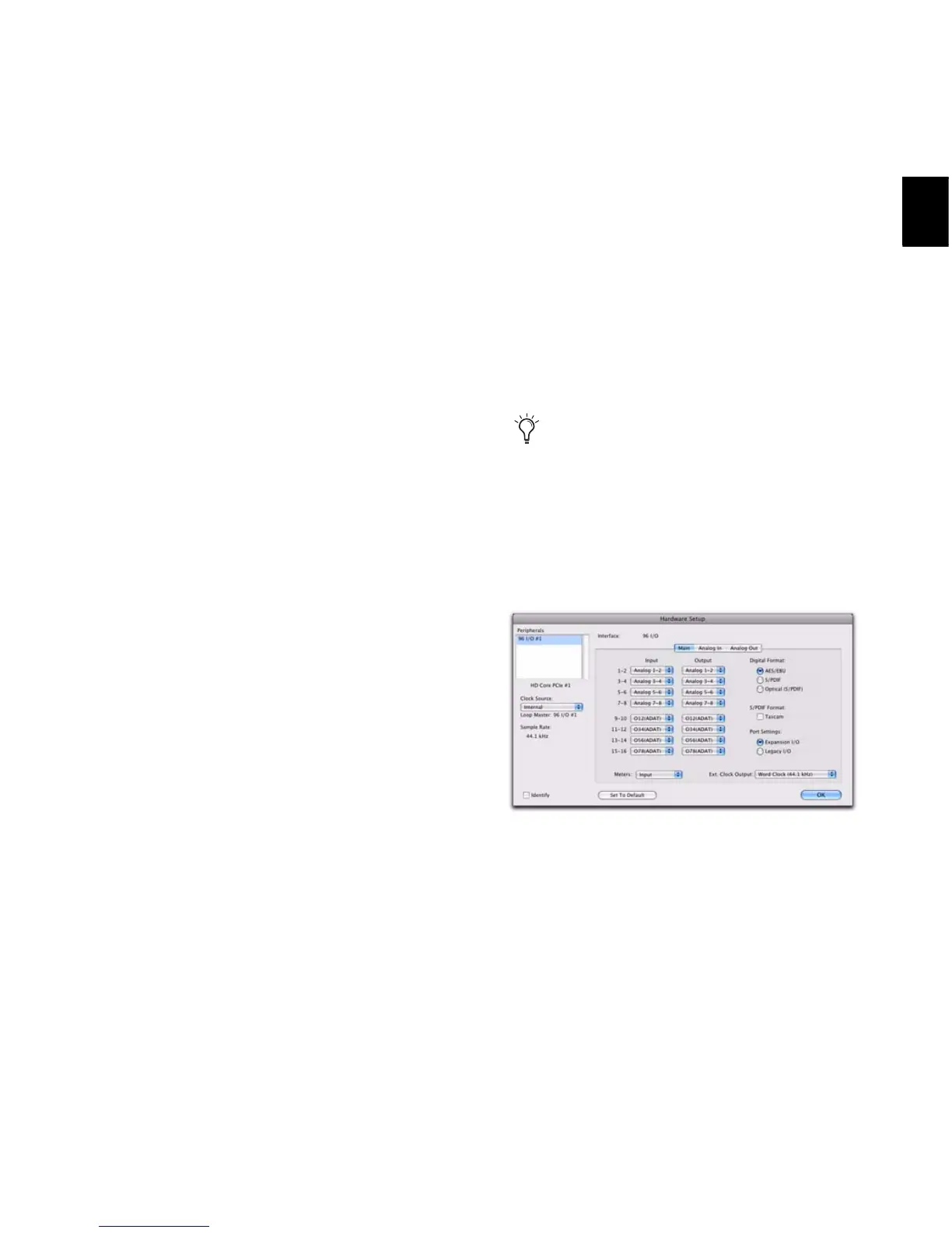 Hardware Setup dialog for 96 I/O (Main page)