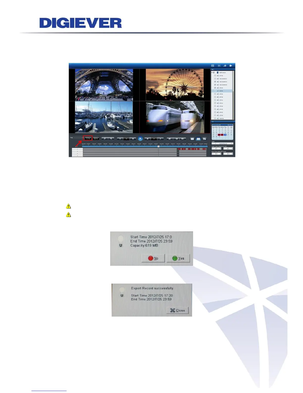 Please select cameras, video file types, date and the time period first, and then click