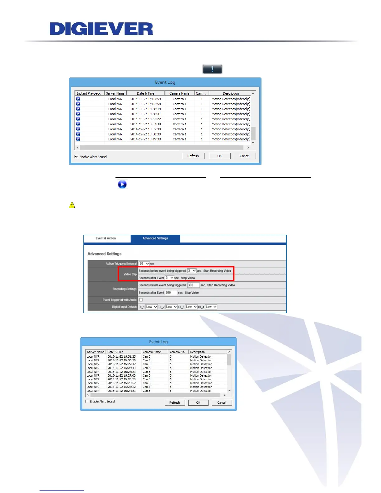 Note: The default length of video clip for instant playback is 6 seconds. Users