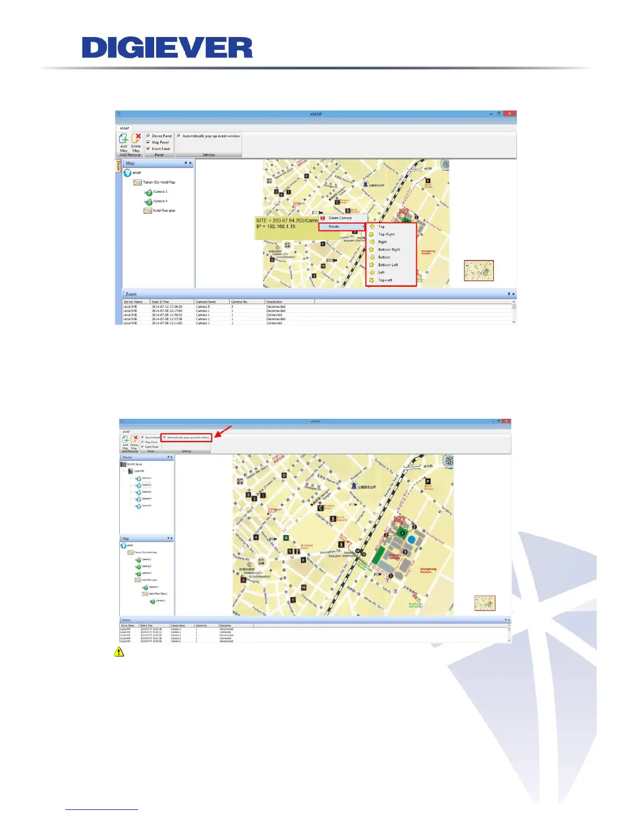 pop-up event window on E-Map, please click the option.