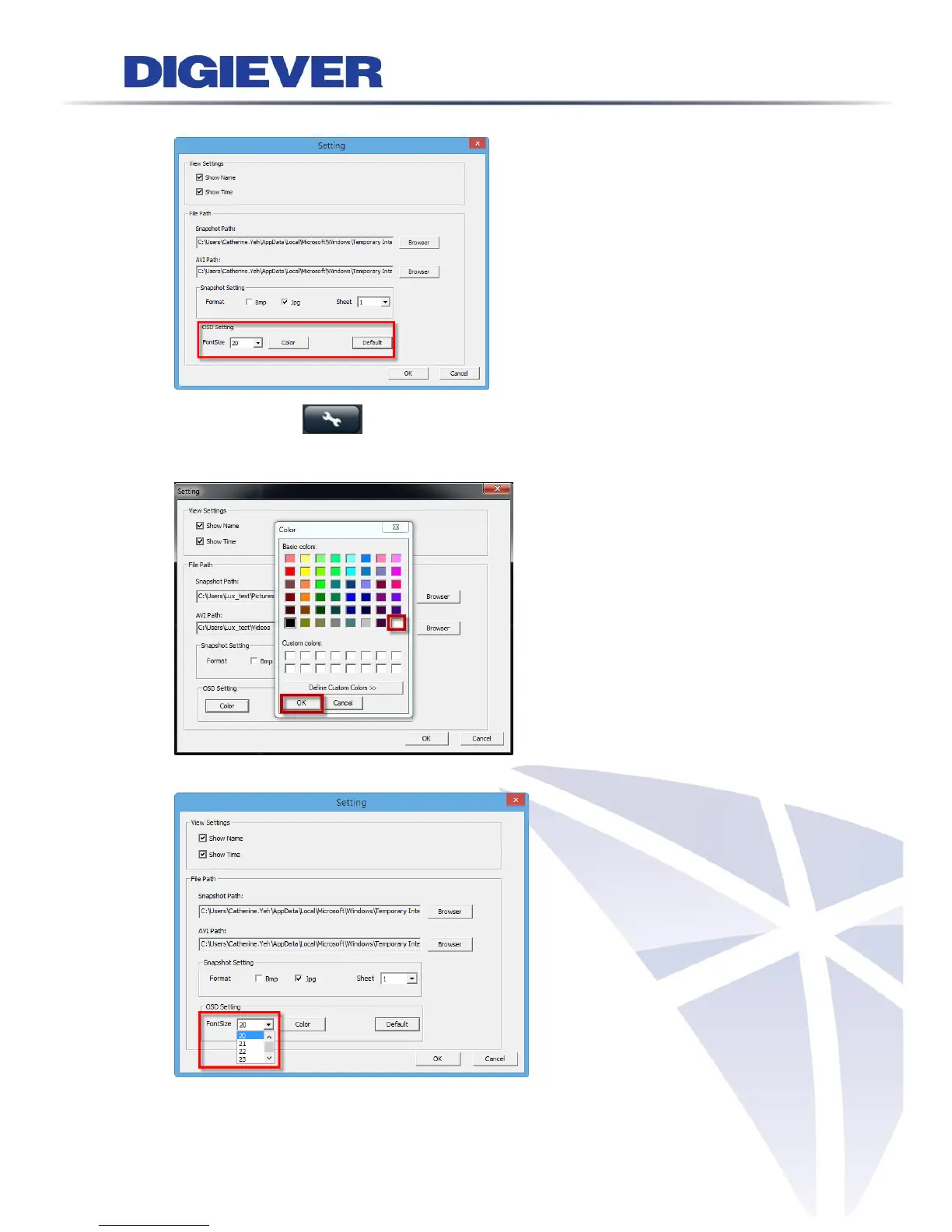 2) Click OSD color setting button the select the OSD color and click “OK”