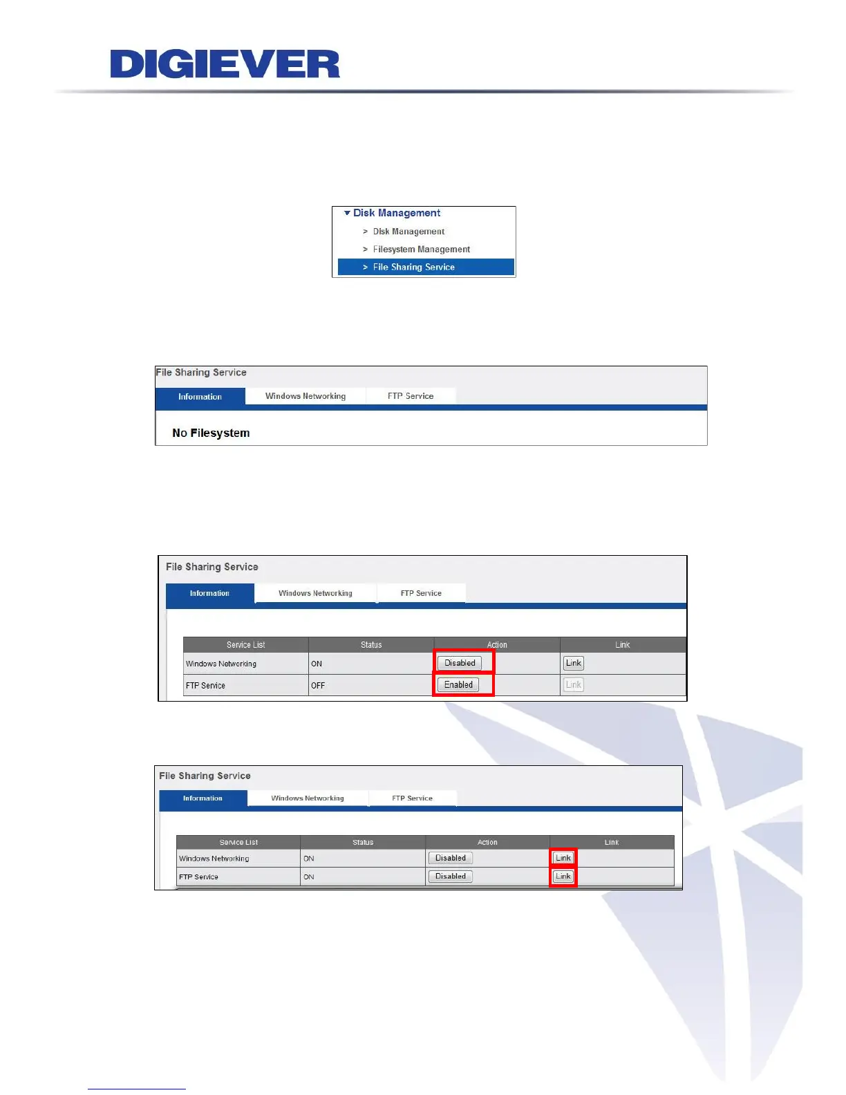 Please select “File Sharing Service” from the drop-down menu of Disk Management