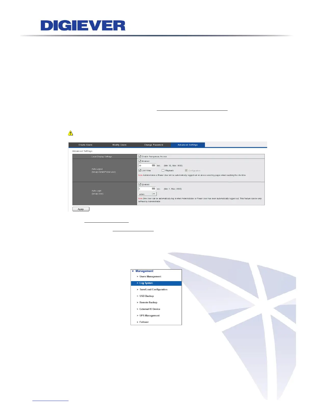 NVR allows users to freely set up the idle time to automatically log out NVR.