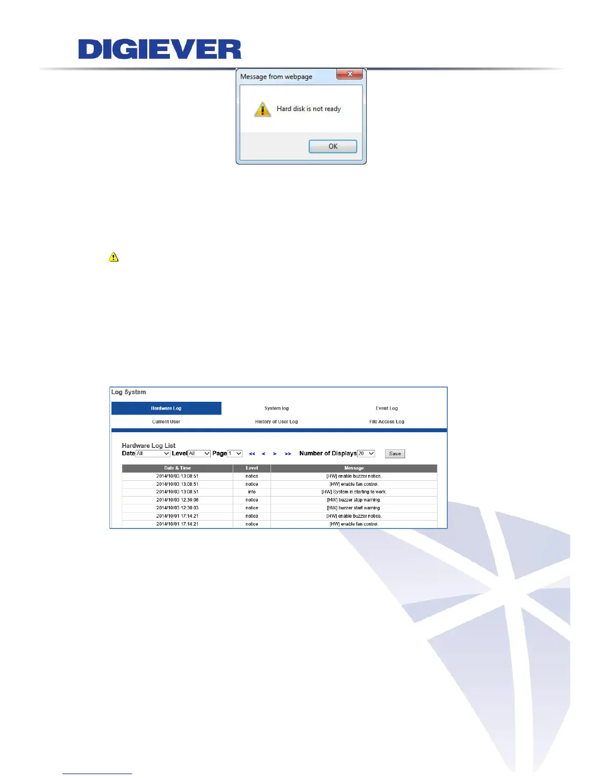 After the hard disk is ready, Log system starts to record the events of the NVR and to