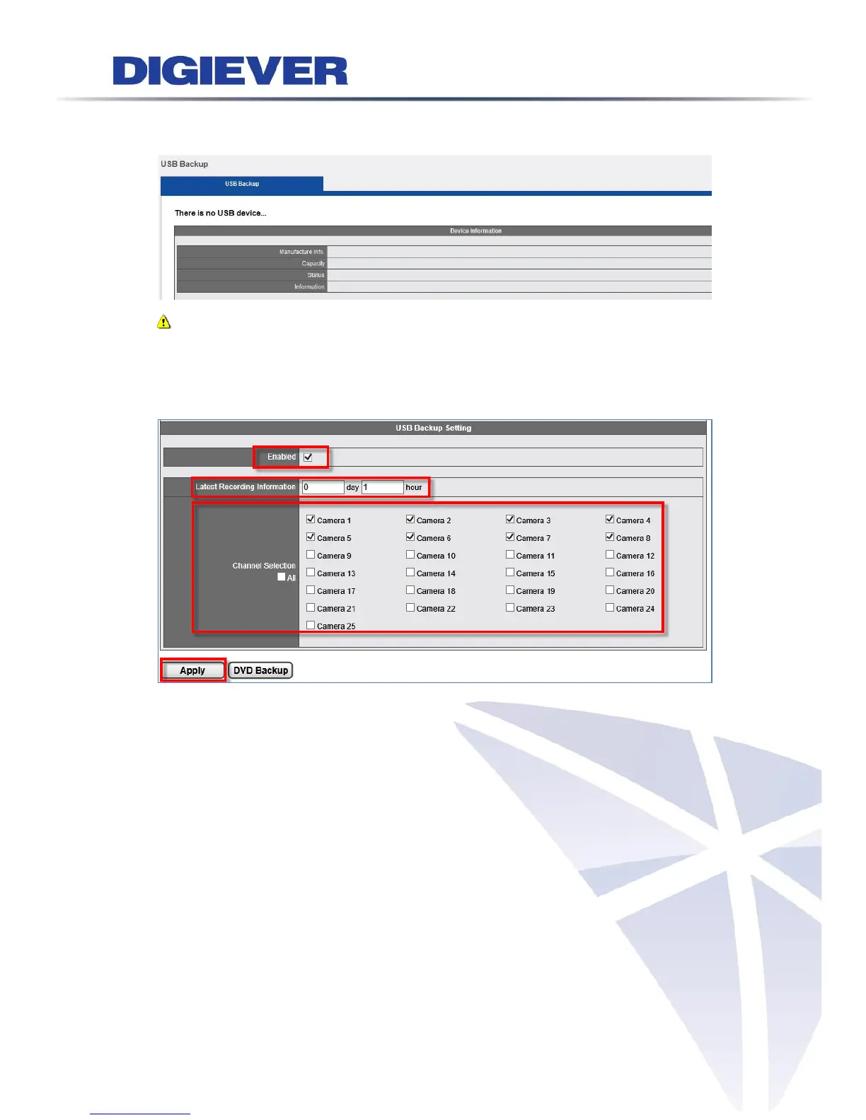 If there is no USB inserted into NVR, the screen will show “There is no USB device…”