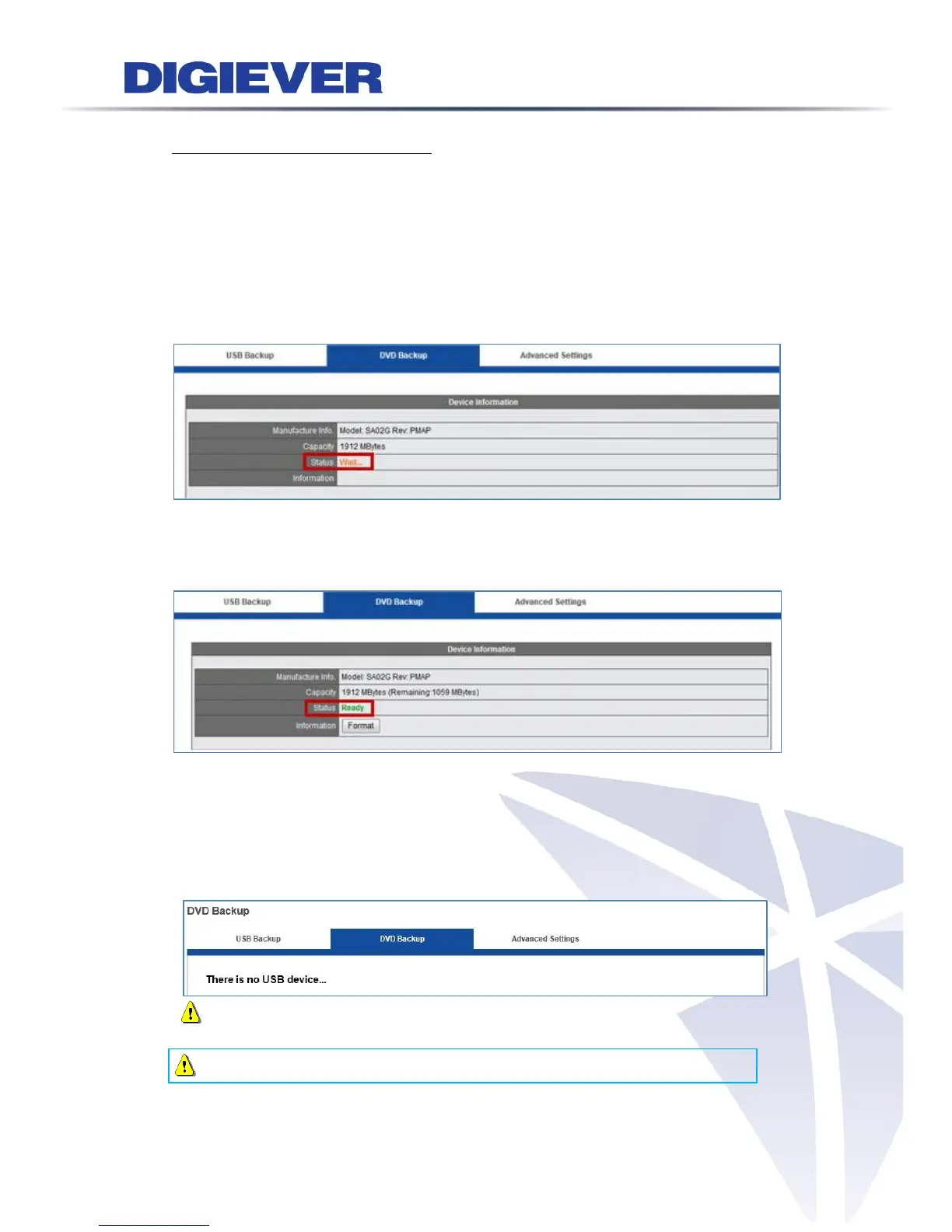 When a USB type DVD burner is inserted to NVR, Device Information of DVD Backup