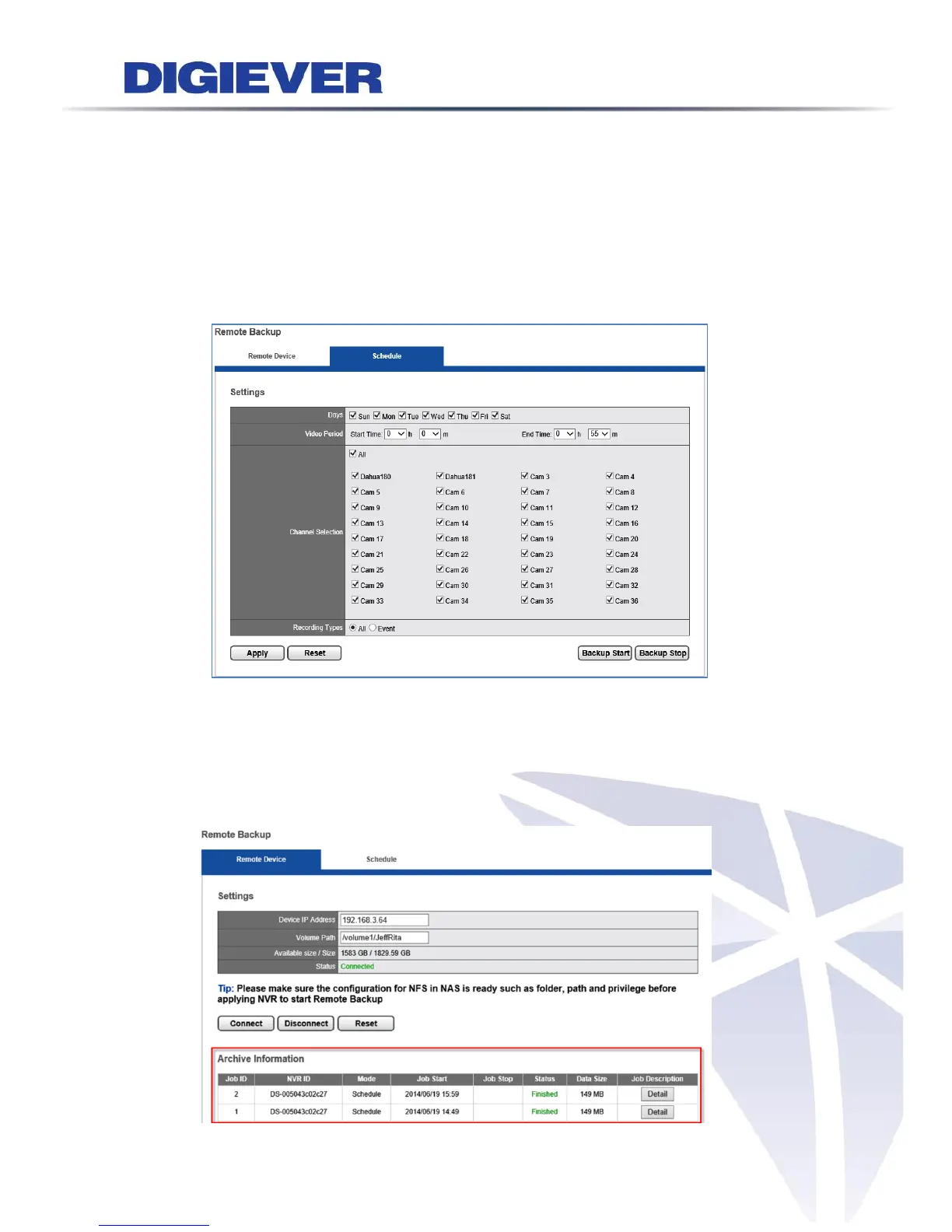 would like to remote backup in the future. Then, click “Apply” and “Backup Start”