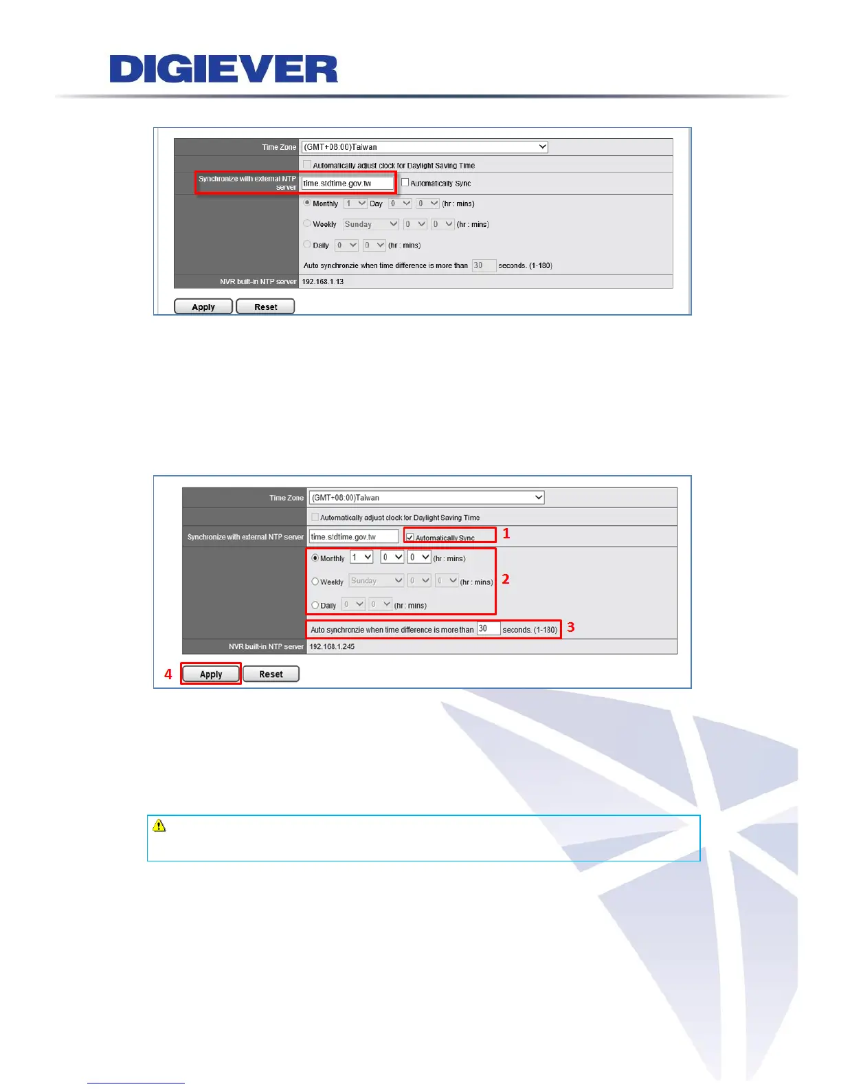 sever by selecting “Automatically Sync.” Based on users’ preference, NVR