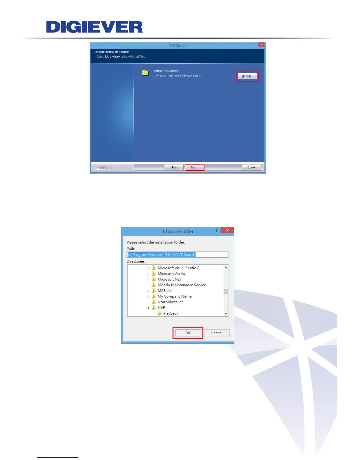 The default location is: C:\Program Files (x86)\NVR\EZ Search. Users can also install