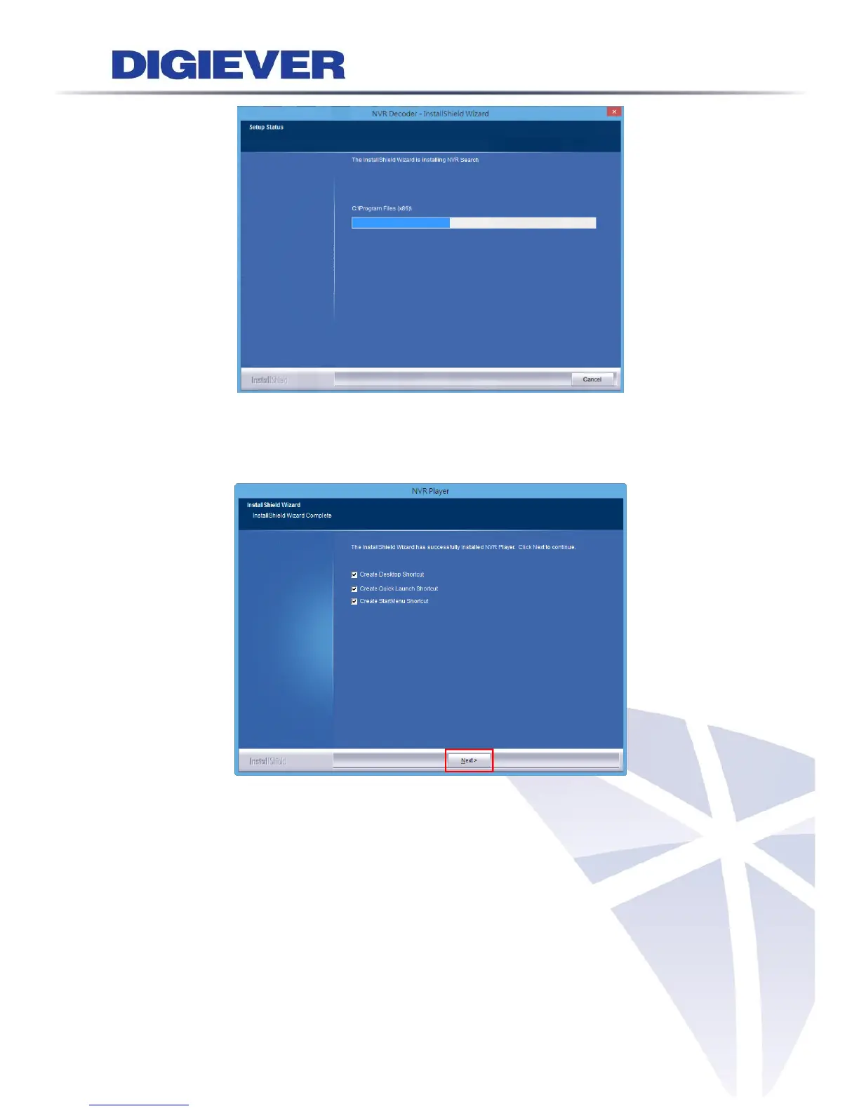 The InstallShield has successfully installed NVR Player. Select “Create Desktop