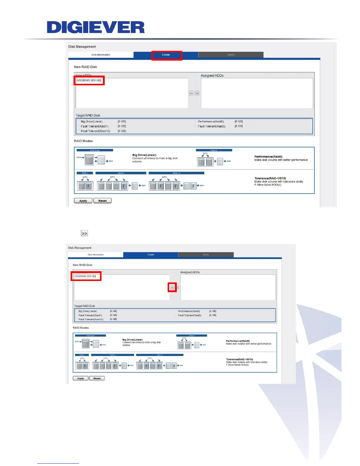 The selected hard disk drive in the Free HDDs field will be marked in blue and please