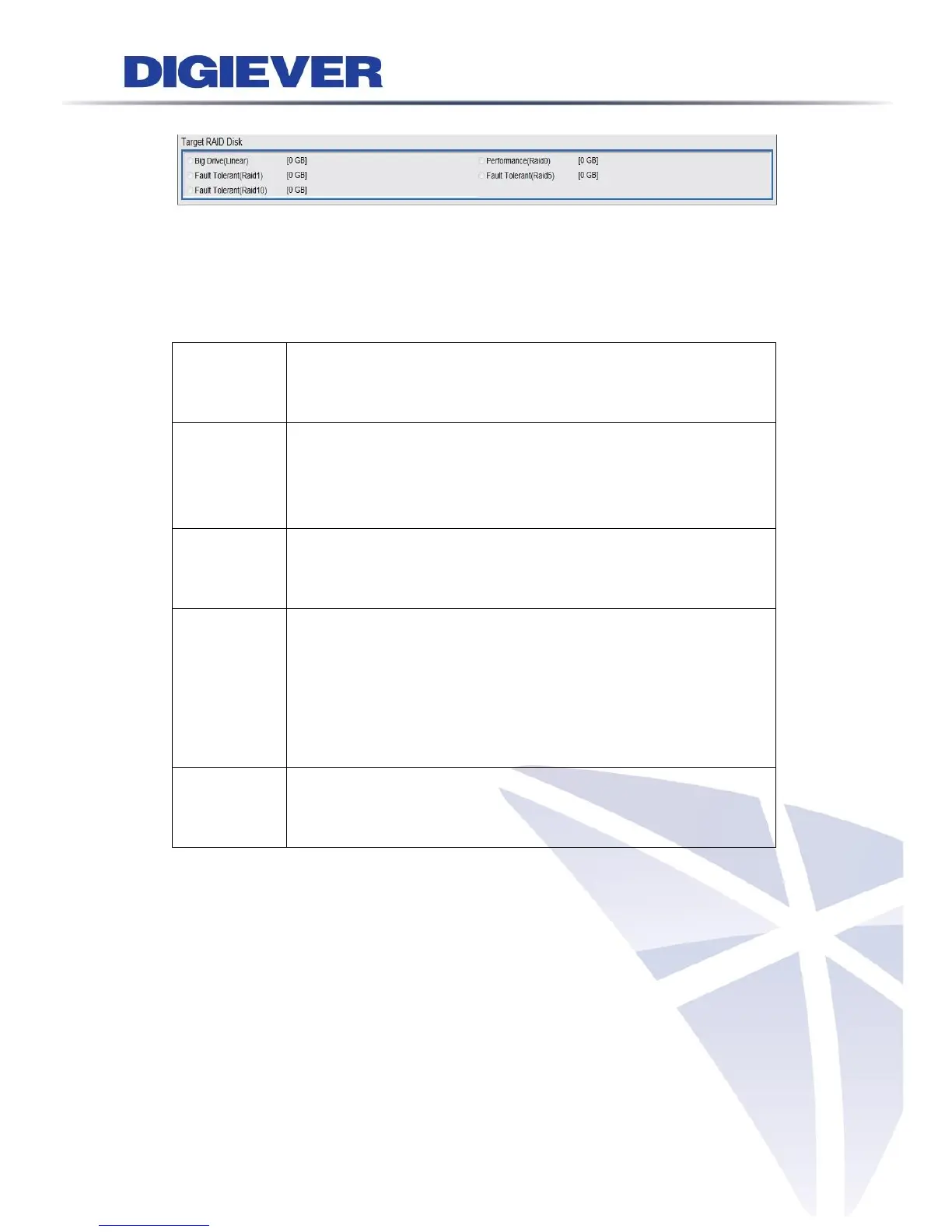 Meanwhile, Target RAID Disk is ready to build RAID disk and it shows five types of