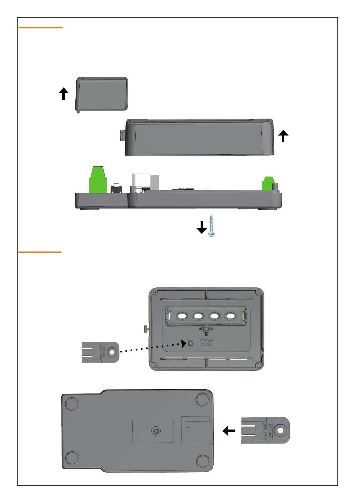 cover is fixed to the base using a Phillips head screw. The top cover needs to be removed to install the wire antenna.