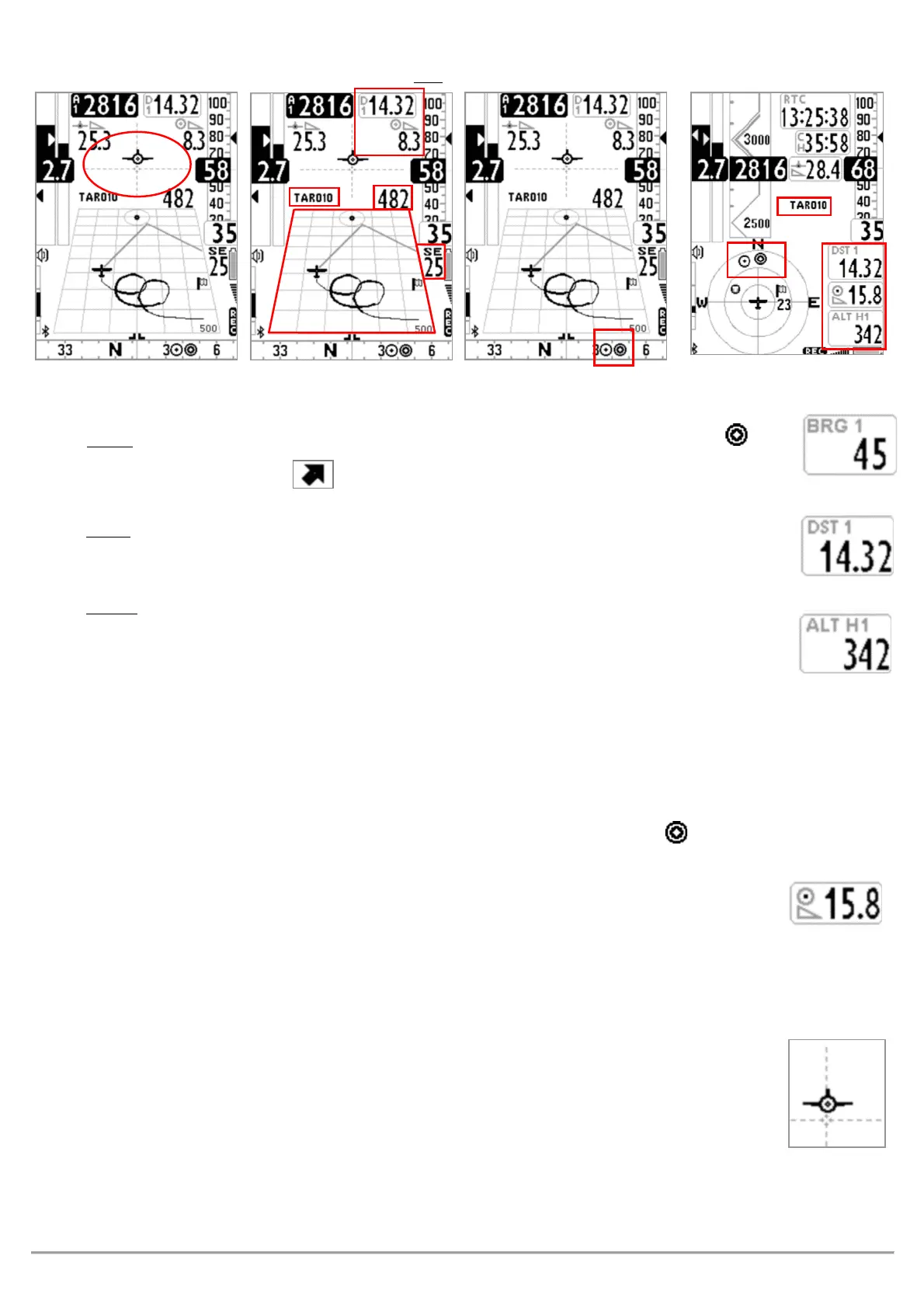 ): is the direction to the current Waypoint; it is shown on the compass with the icon