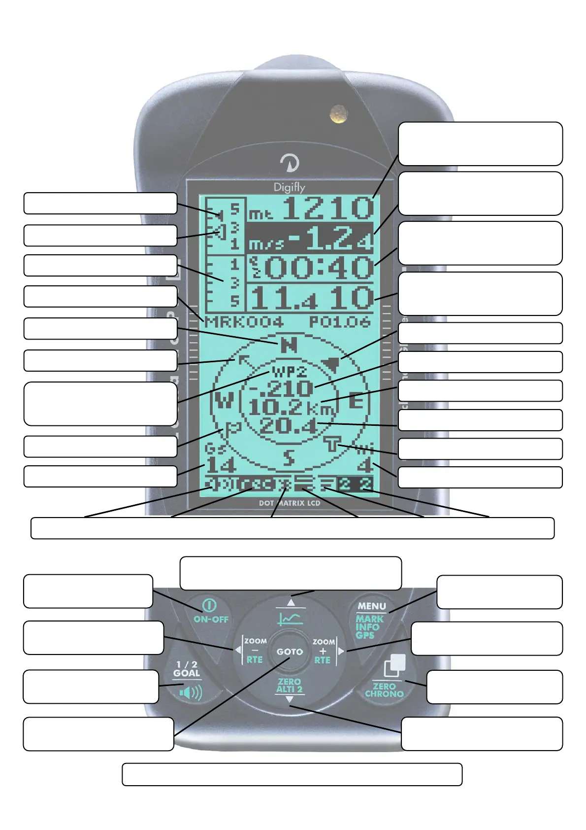 Volume Level - Flight Recorder - Bluetooth Link - Battery State - GPS Signal - Subpage
