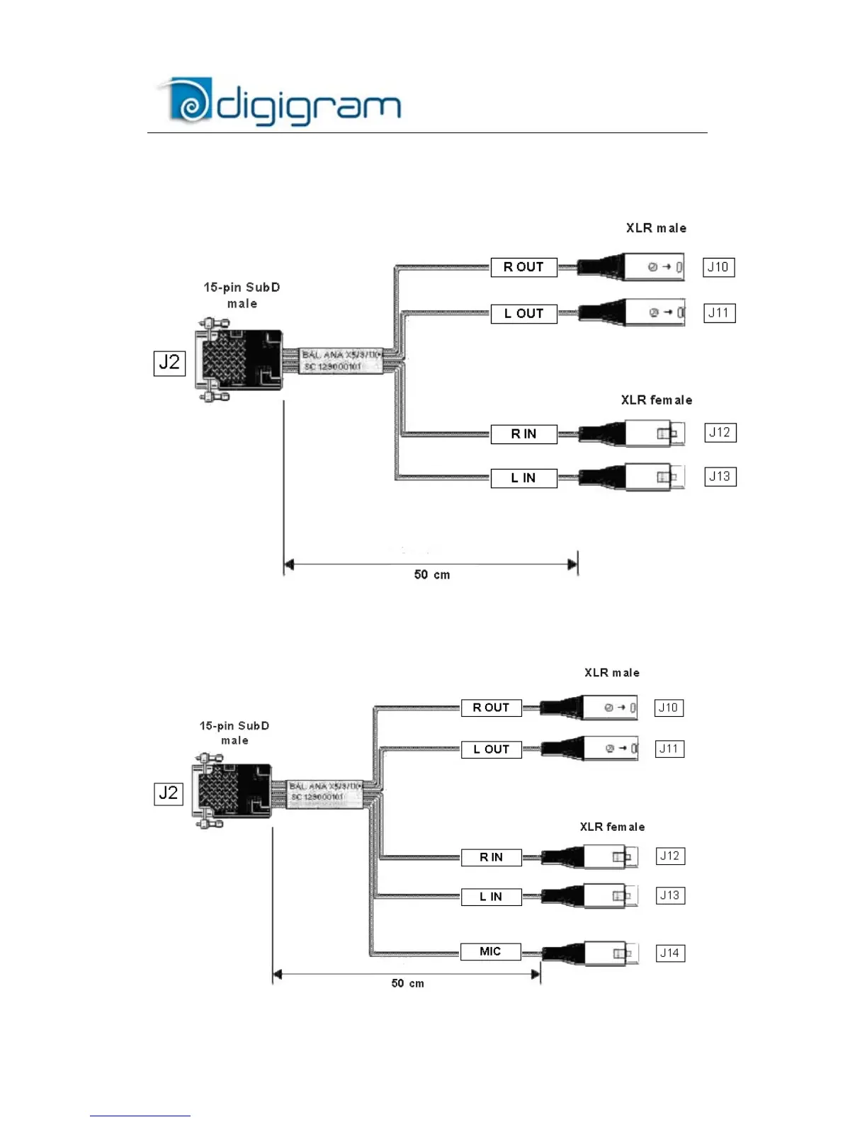 Digigram VX222e - VX222 e Analog Cable Diagrams; VX222 e-Mic Analog Cable Diagrams