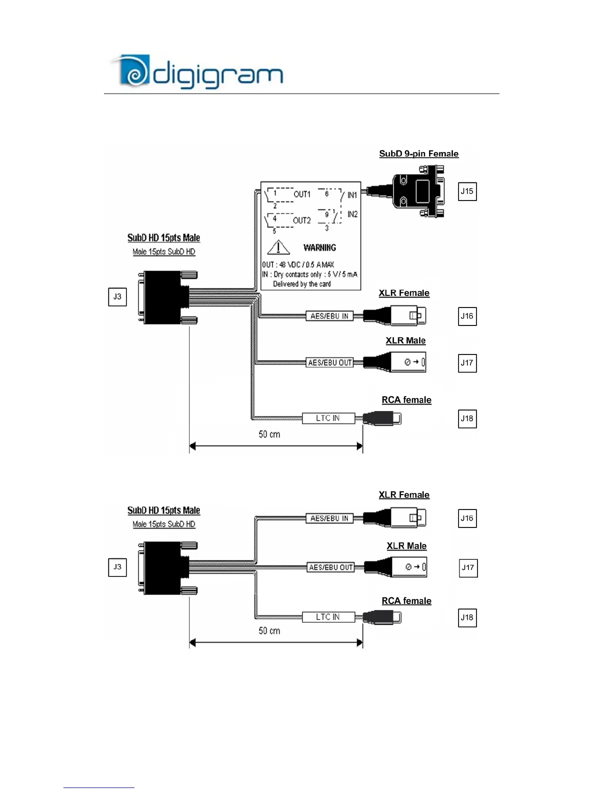 Schematic diagram of the cable delivered by Digigram*: