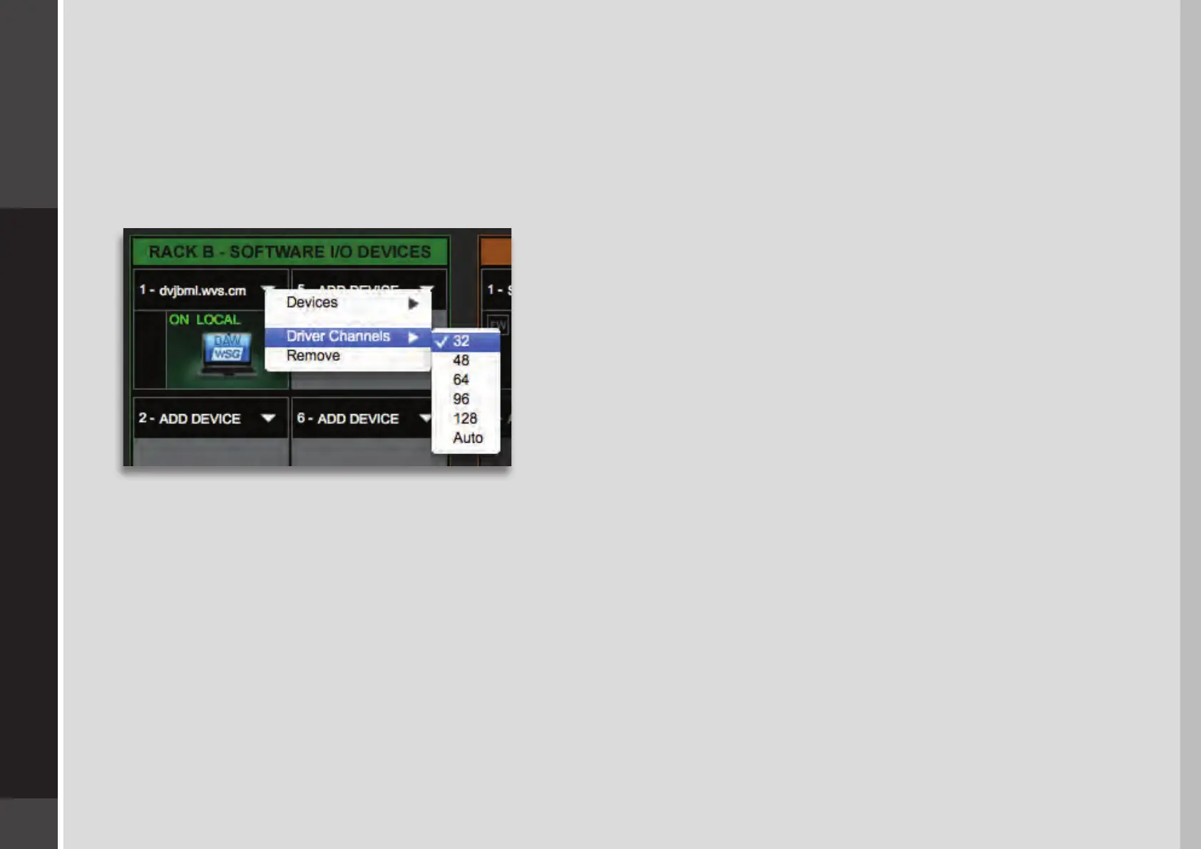 128 driver channels. This is done in Rack B of the Setup page. The number