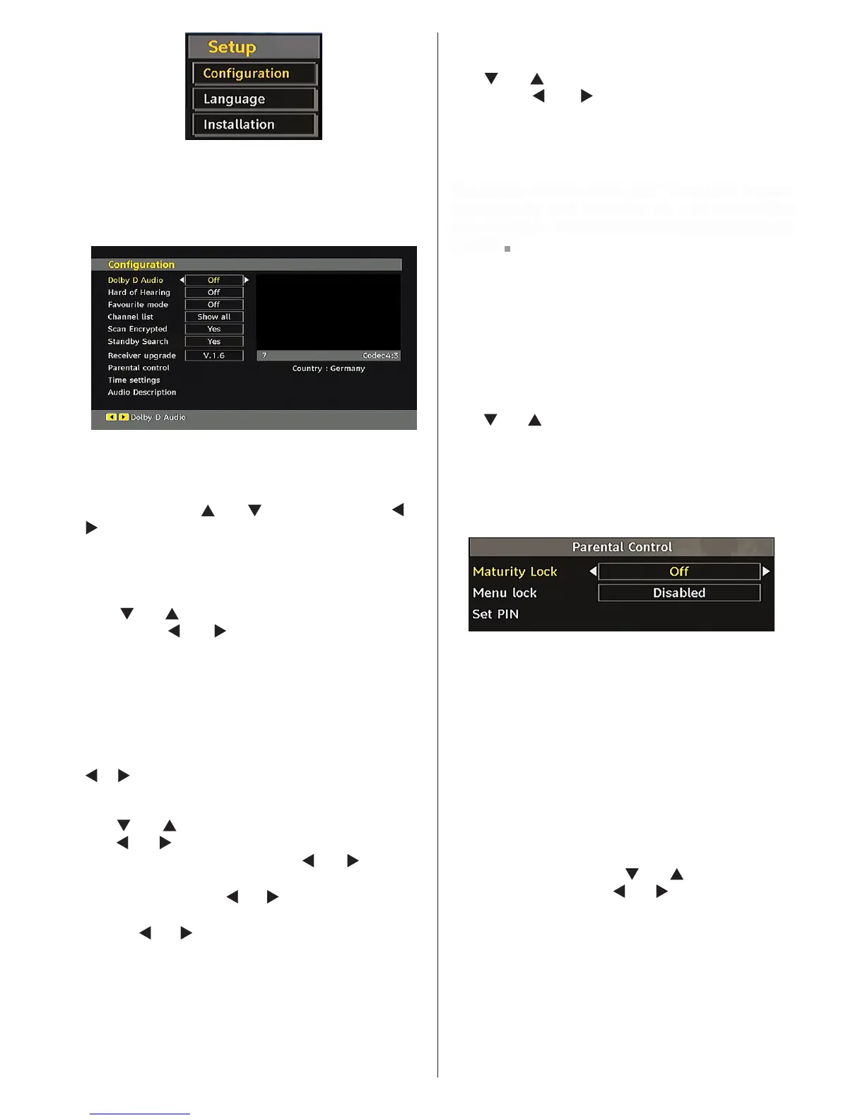 Use “ ” or “ ” buttons to go to Parental Lock option.