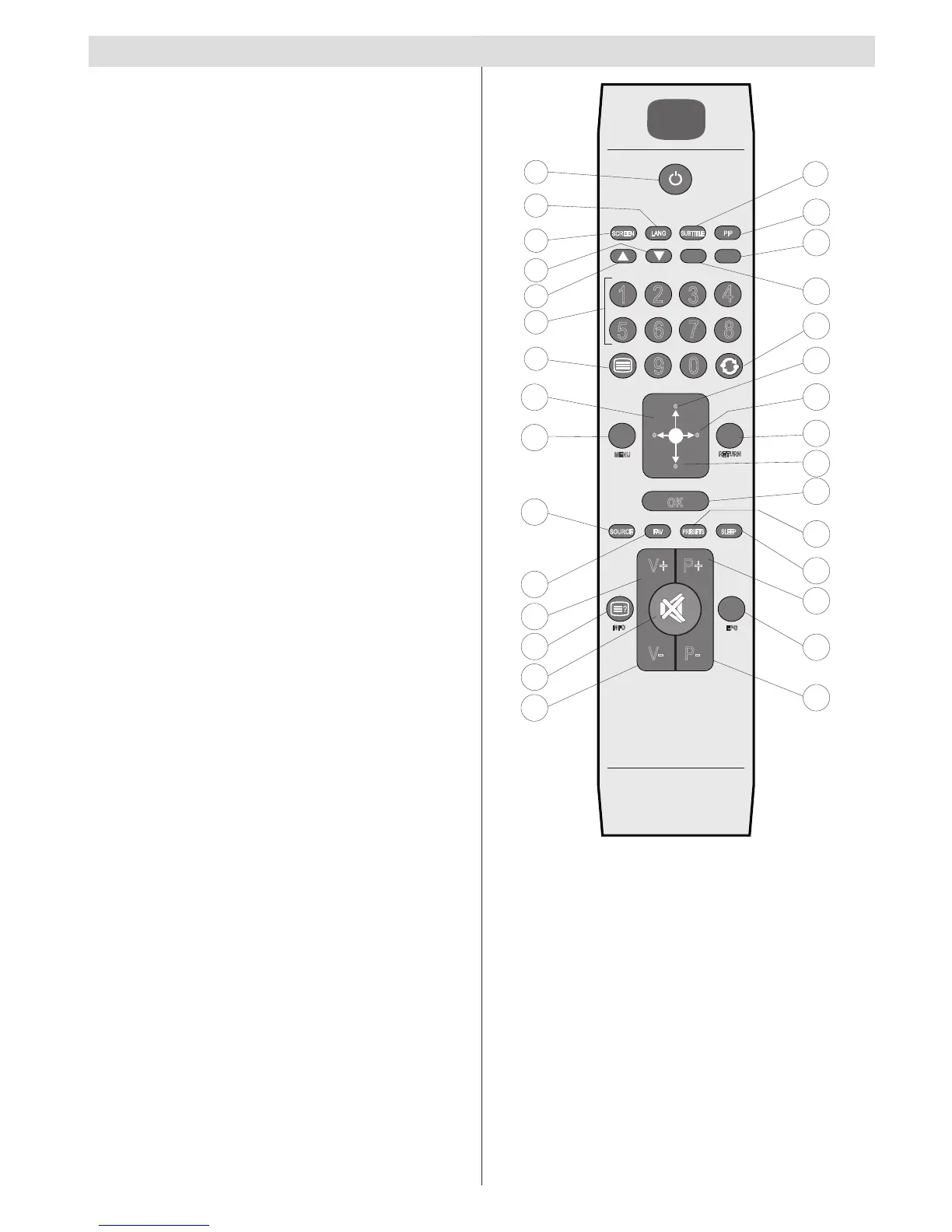 Subtitle on-off (in DTV mode) / TXT subtitle 30.