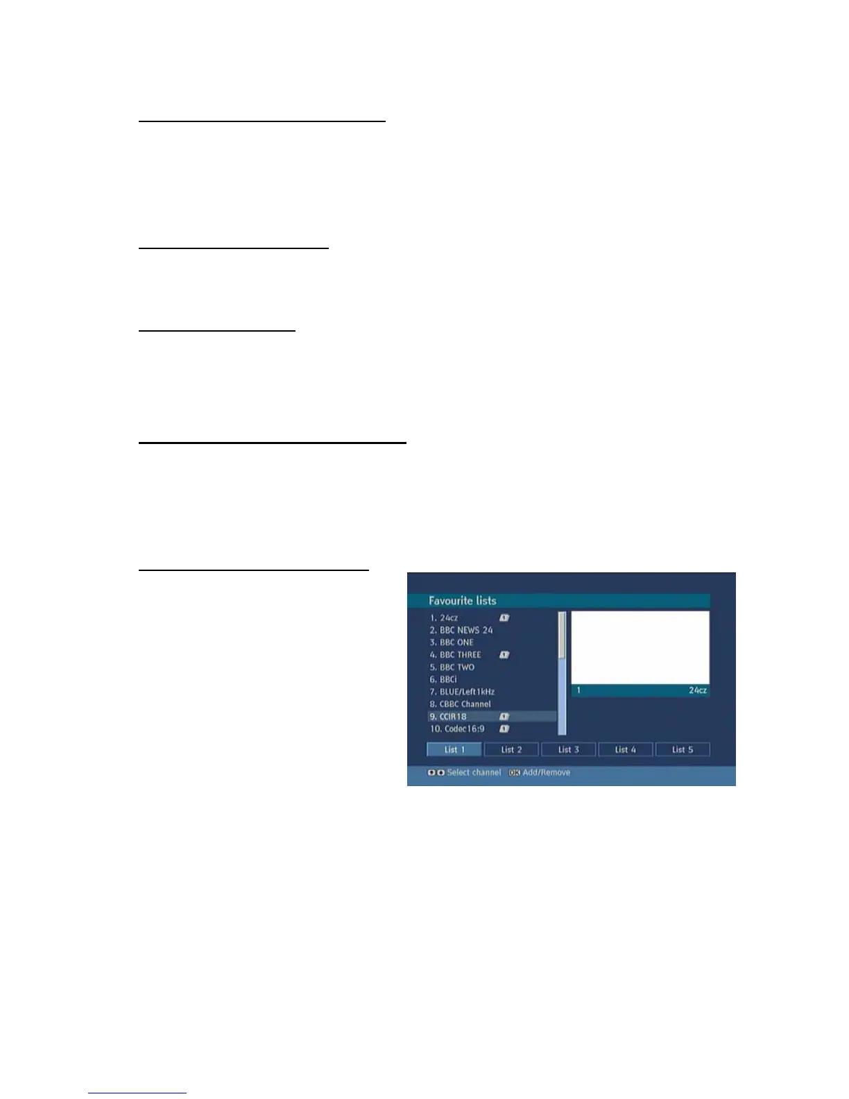 Ø You can step through your favourite lists with the FAV button on the remote. Each press will