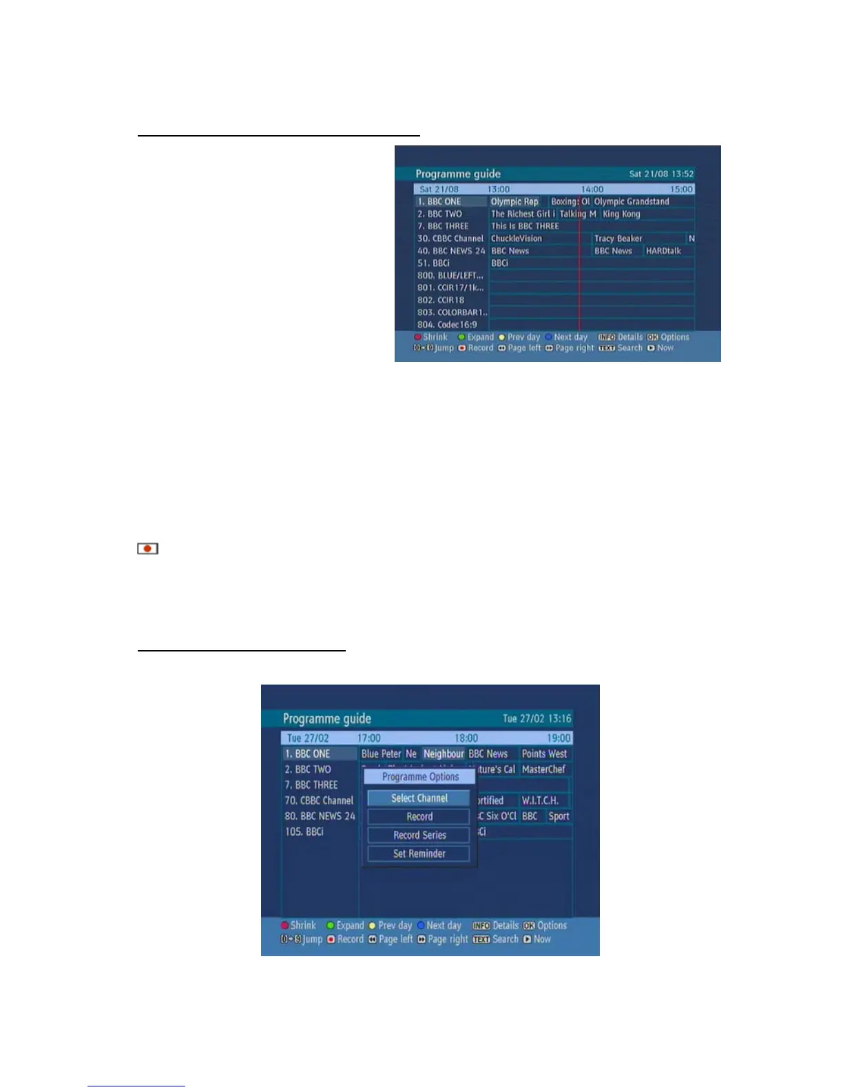 (RECORD) : the unit will record the selected progamme.