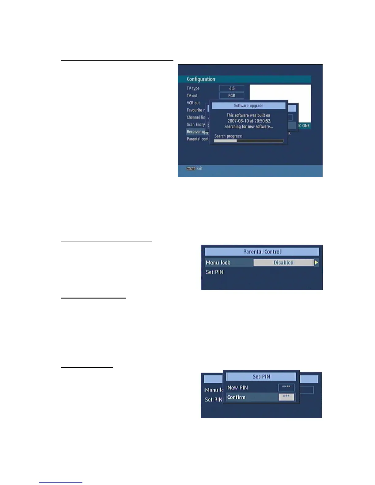 Ø Highlight “Scan for upgrade” menu with “5/6” keys and pres OK to commence upgrade.