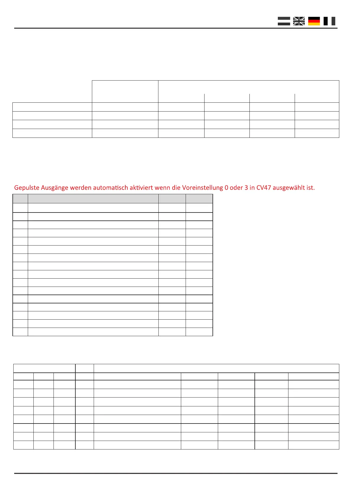 In dieser Tabelle sehen Sie, wie die verschiedenen Signalnummern mit Ausgangsgruppen verbunden werden. Es