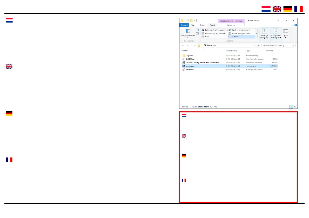 en Drivers succesvol is verlopen. Daarbij dient de DR5000 aan‐