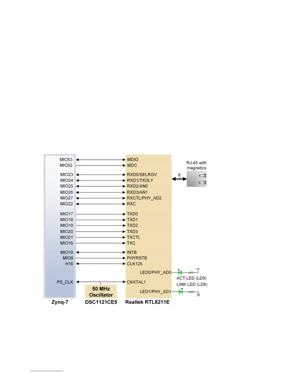 Zynq-7000 APSoC via RGMII for data and MDIO for management. The auxiliary interrupt
