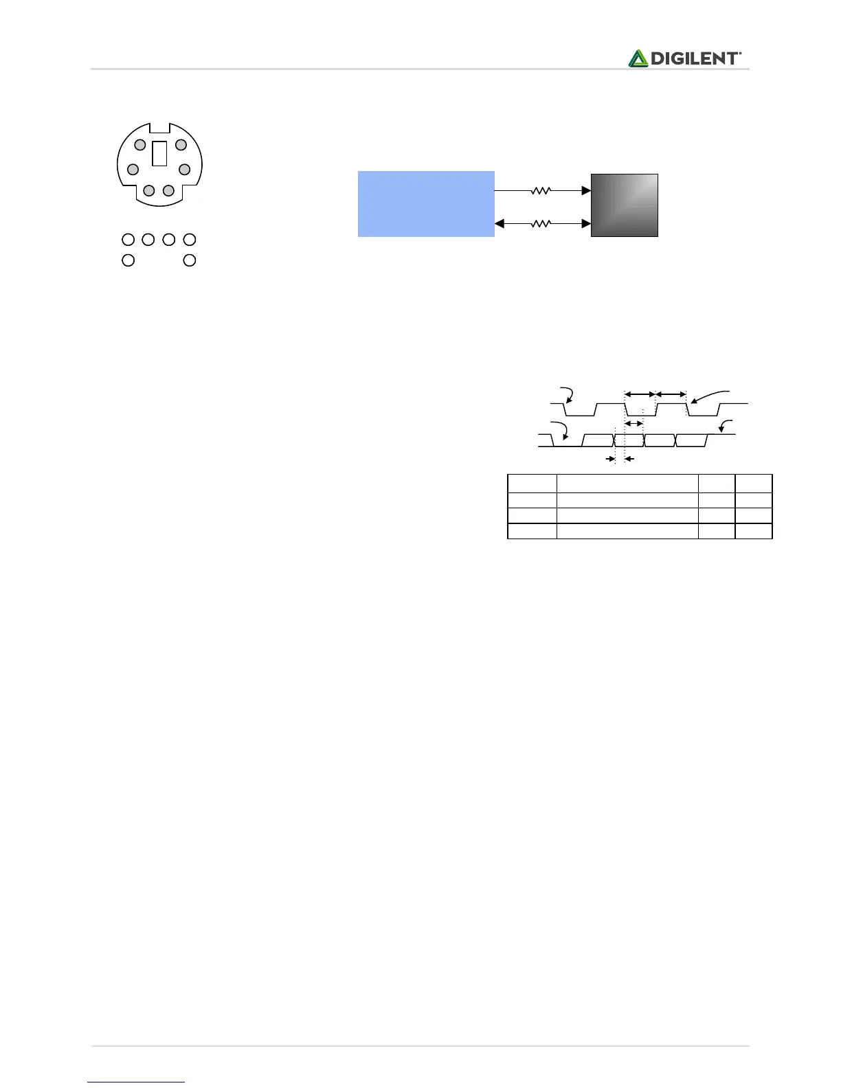 Figure 9. PS/2 connector and Basys 2 PS/2 circuit.