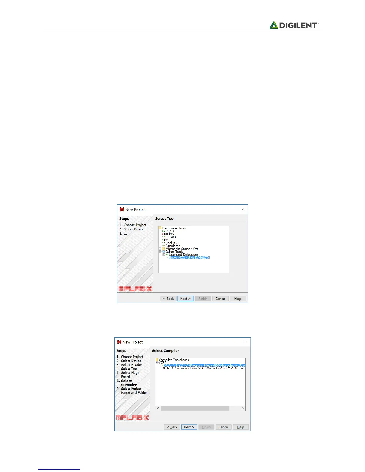 When creating a new project in MPLAB X, a wizard allows you to setup the environment and device specific tools.