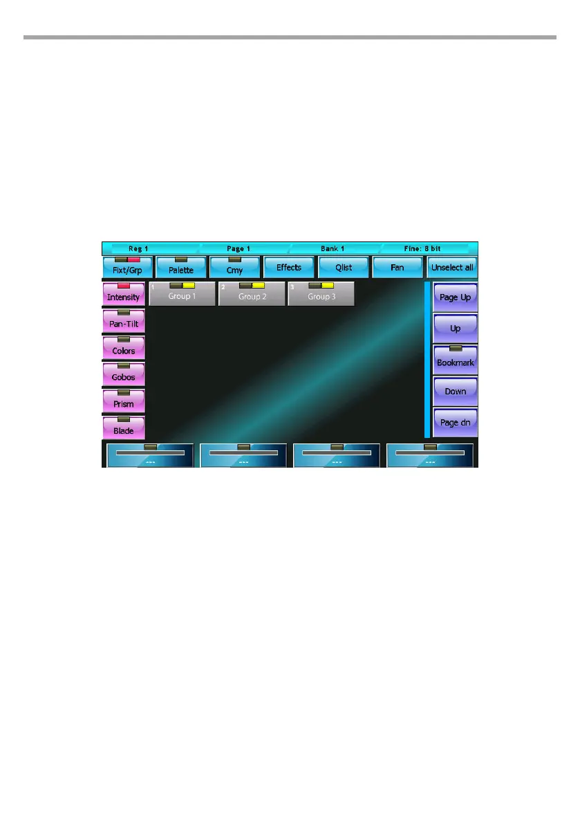 (when switched o, all parameters of all the group xtures are Empty; when red, all parameters of all the